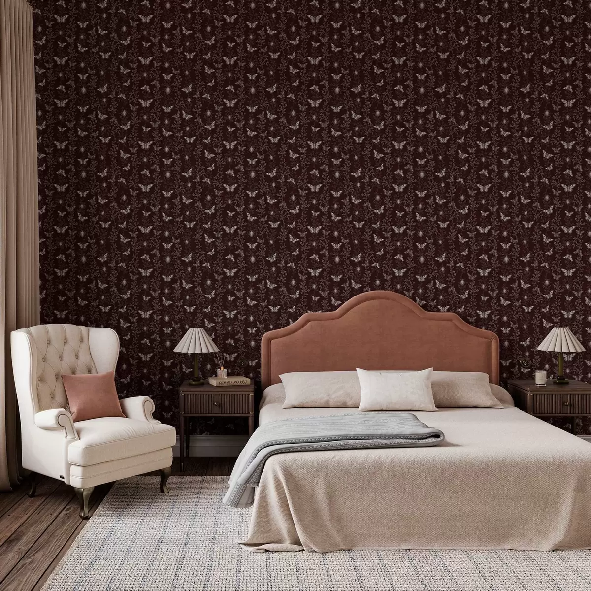 Tapeta Композиција са лептирима, лишћем и инсектима на тамној позадини бр. a00073v1
