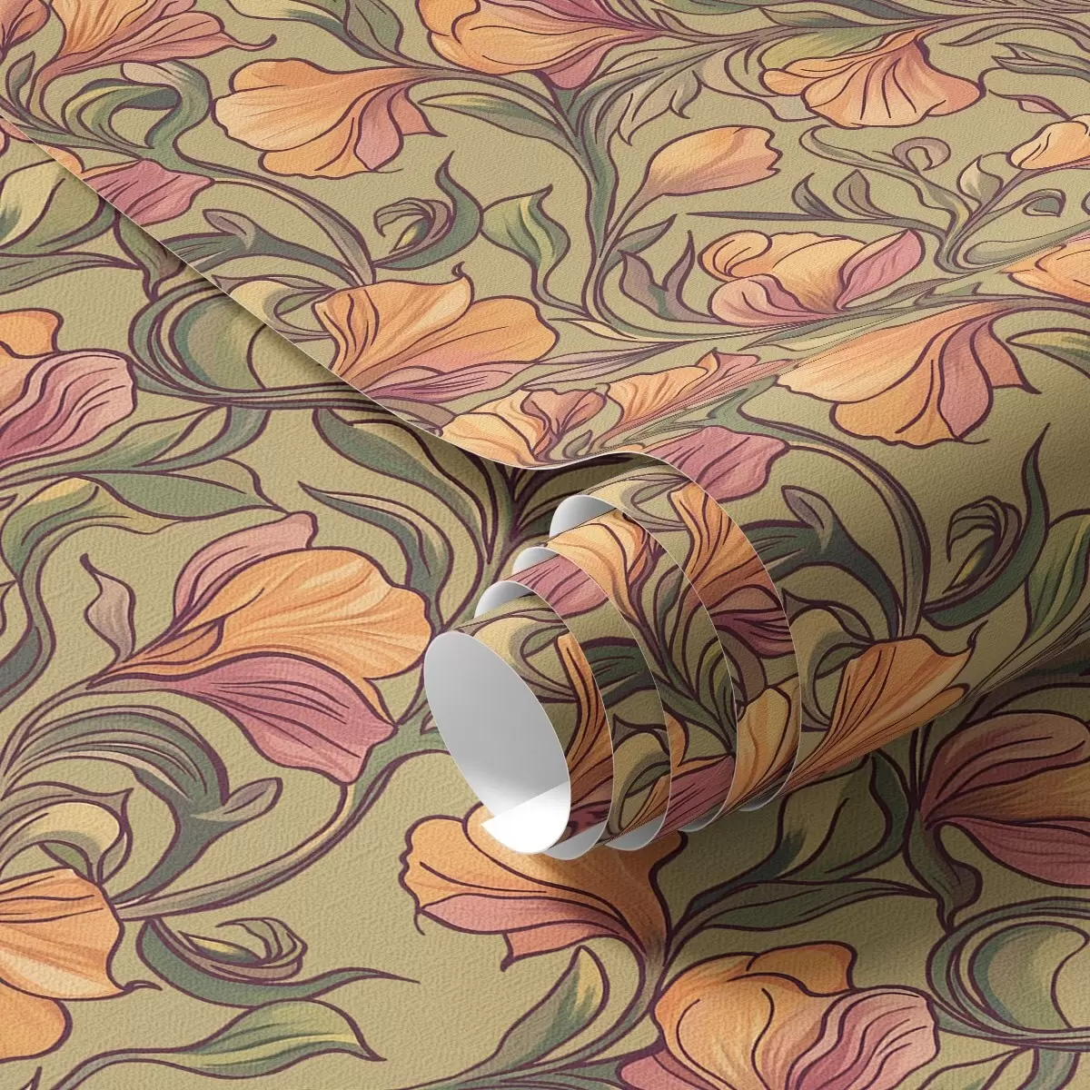 Tapeta Светле увијене стабљике са листовима и цветовима бр. a00074