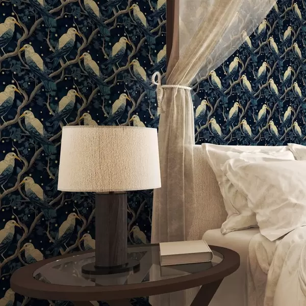 Tapeta Беле птице на гранама међу сјајним кријесницама у ноћној шуми бр. a00109
