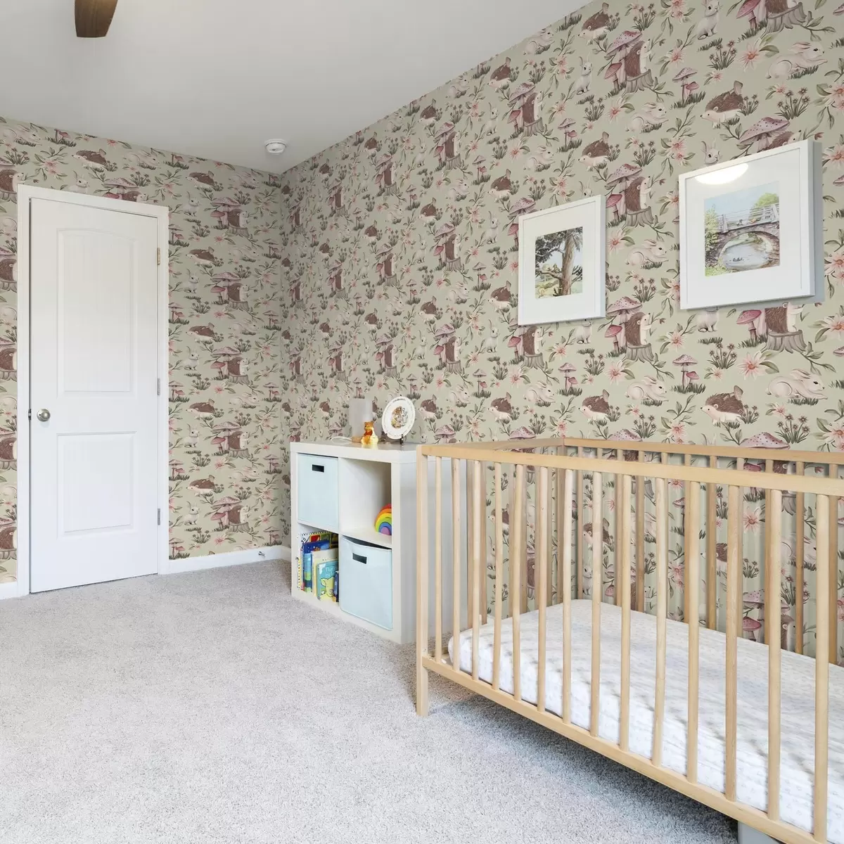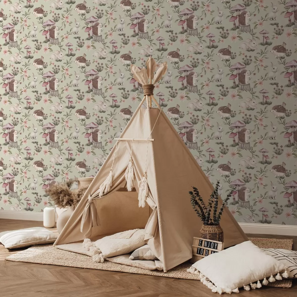 Tapeta Бајковите животиње и цвеће на зеленој позадини у деликатним пастелним бојама бр. a00111v1