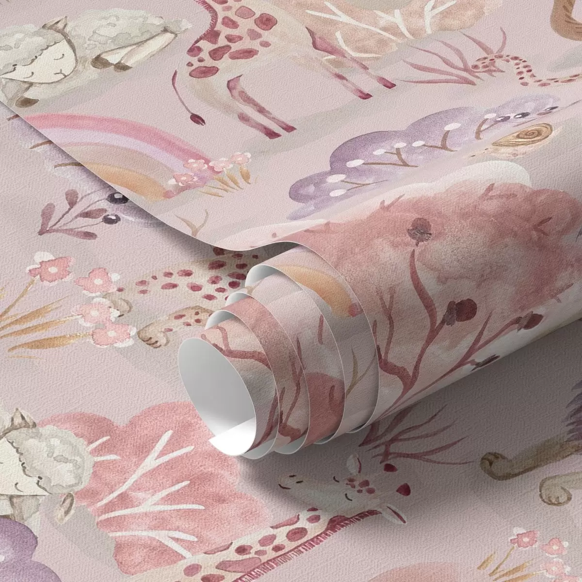 Tapeta Младунци лавова, жирафе и дуге у пастелној шуми бр. a00112