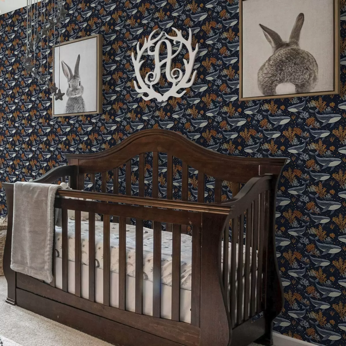 Tapeta Морски китови и корали на тамној позадини бр. a00116
