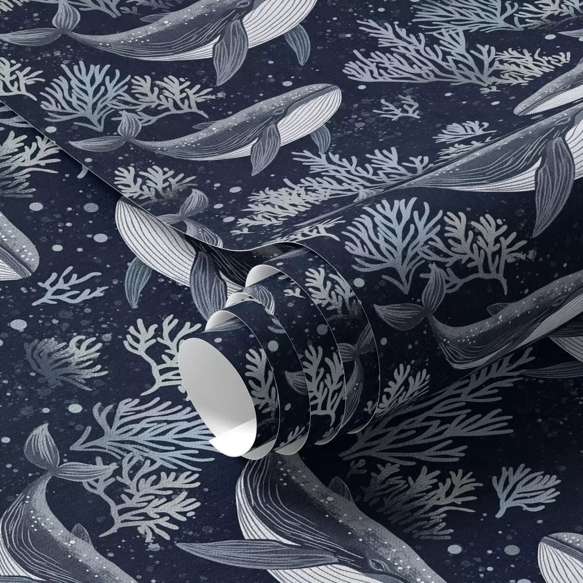 Tapeta Китови и корали на тамно плавој позадини бр. a00116v1