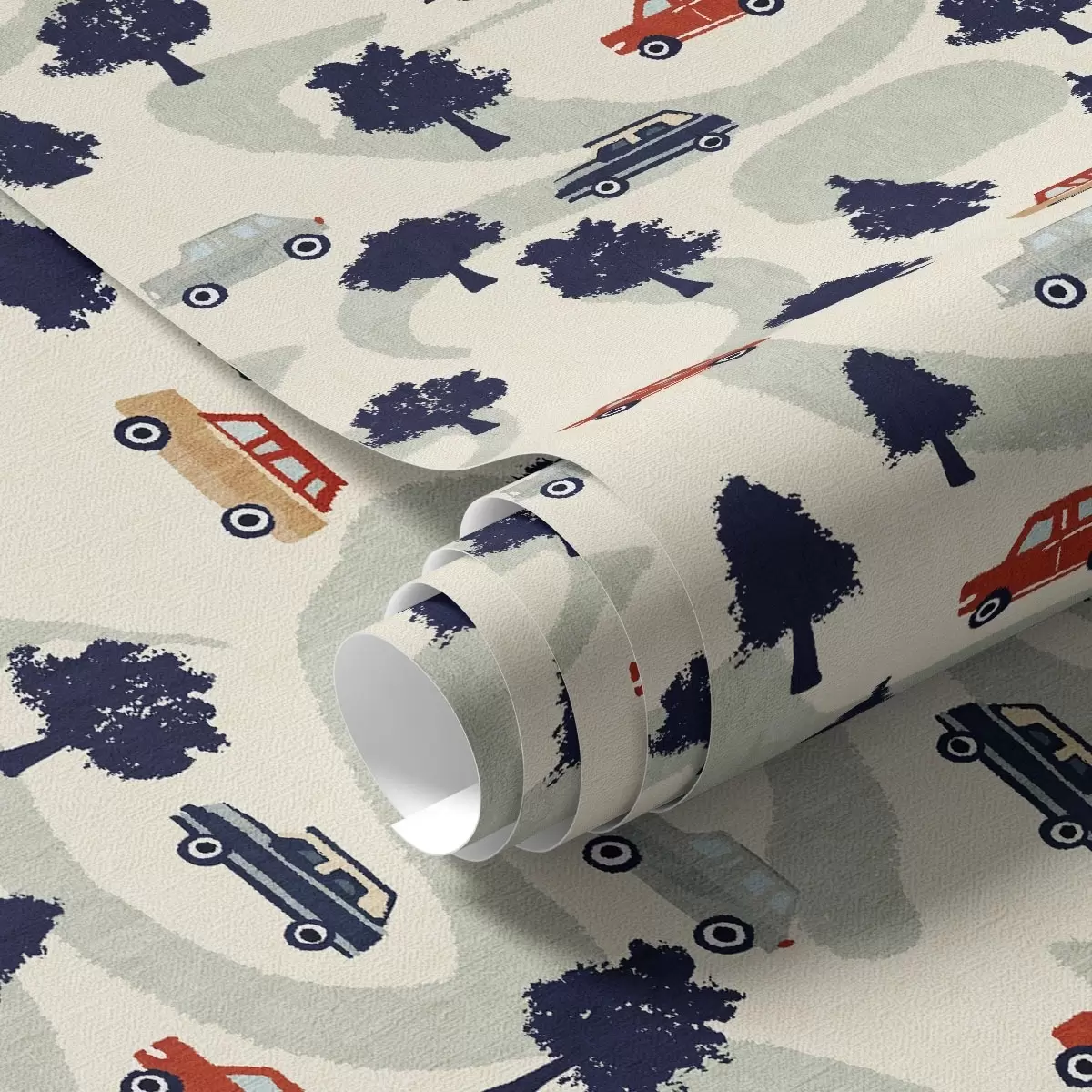 Tapeta Смешни аутомобили међу дрвећем на крем позадини бр. a00119