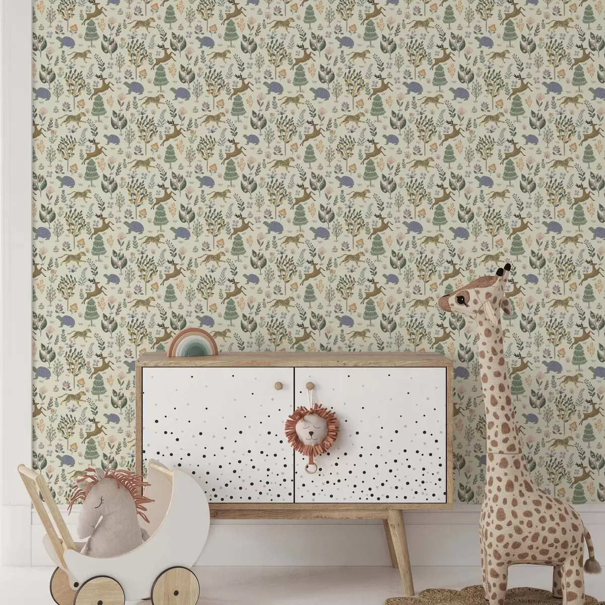 Tapeta Ретро илустрација са леопардима, дрвећем и јеленима бр. a00184