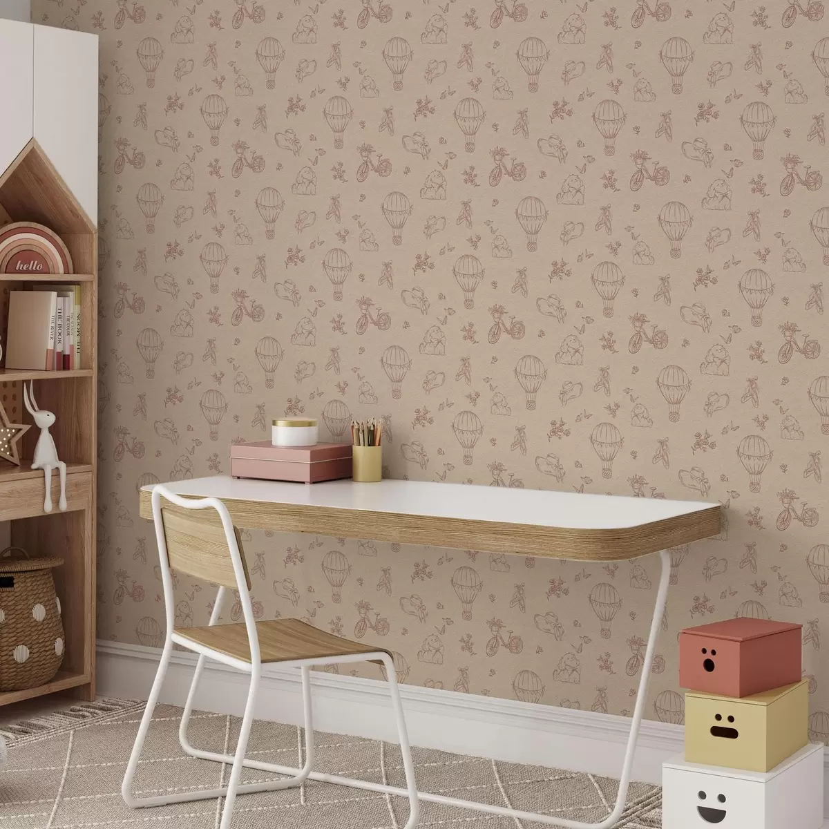 Tapeta Беби ружичасти узорак са псом, цвећем и ваздухом бр. a00279