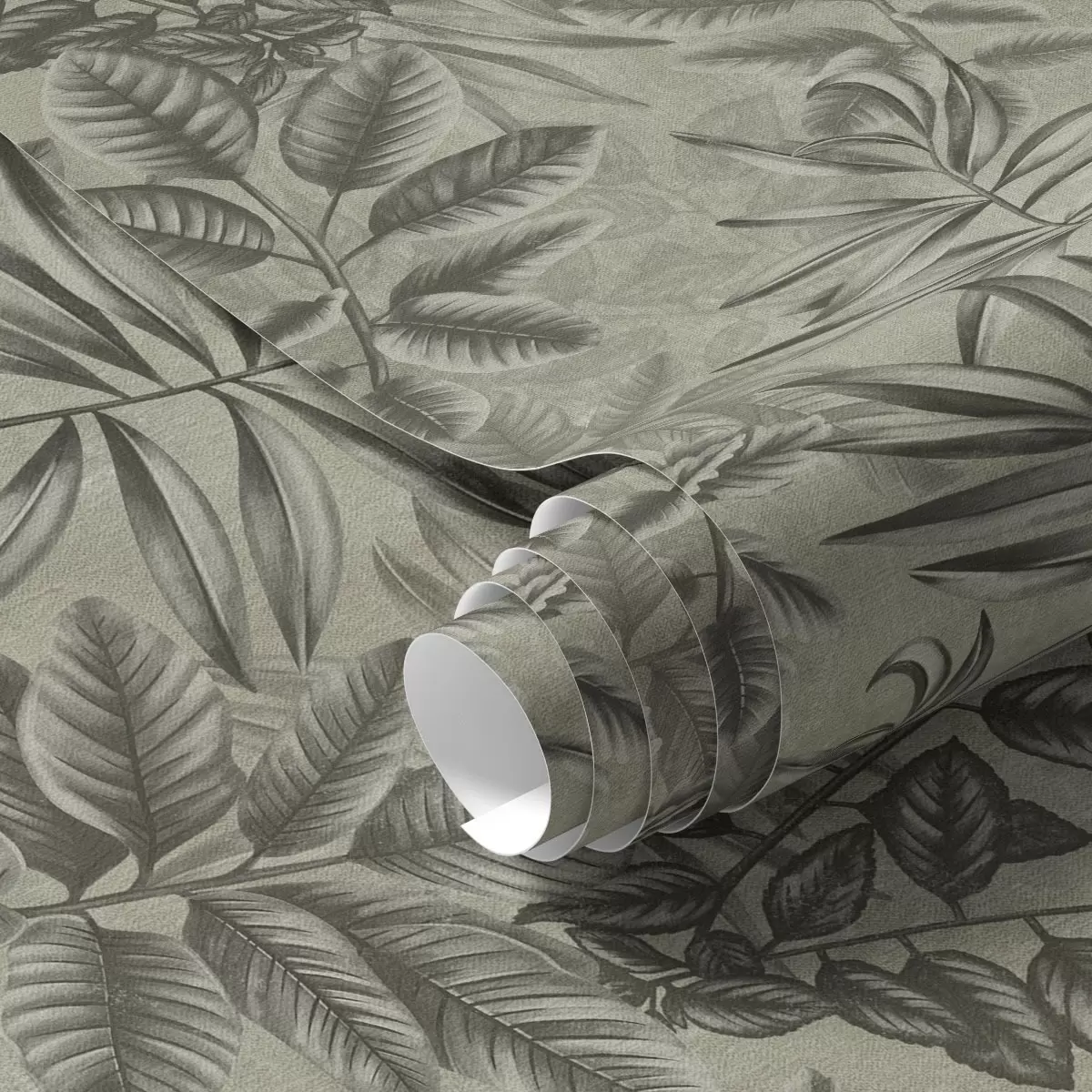 Tapeta Сиво тропско лишће различитих облика на винтаге позадини бр. a00297
