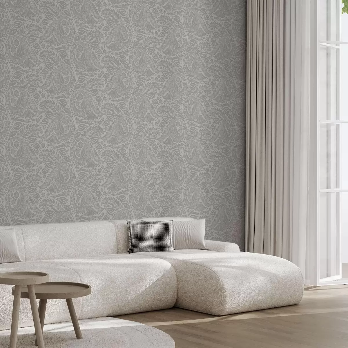 Tapeta Сива фолклорна стилизација са лишћем и цвећем бр. a00301