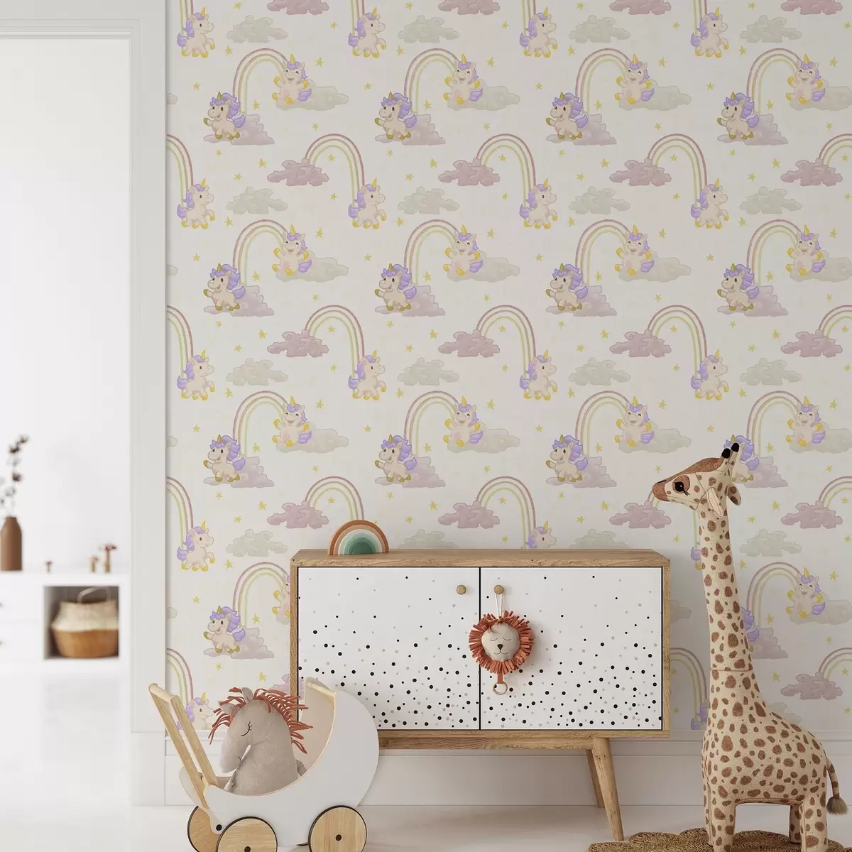 Tapeta Слатки једнорог са дугама и звездама бр. a00339