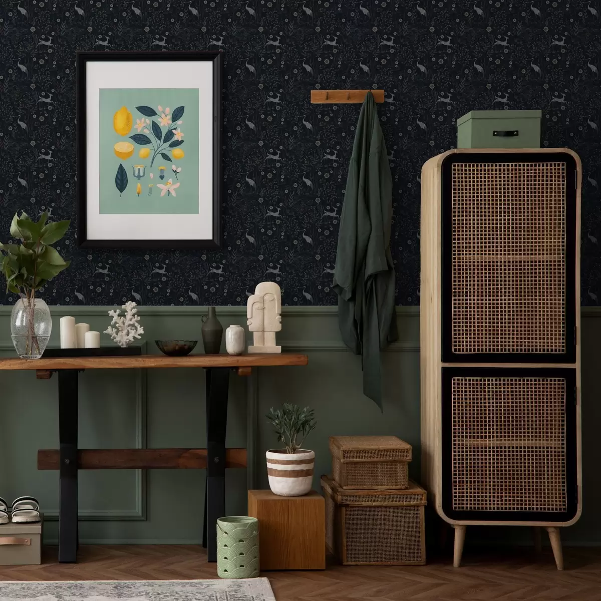 Tapeta Тамна позадина са белим птицама и јеленима бр. a00363