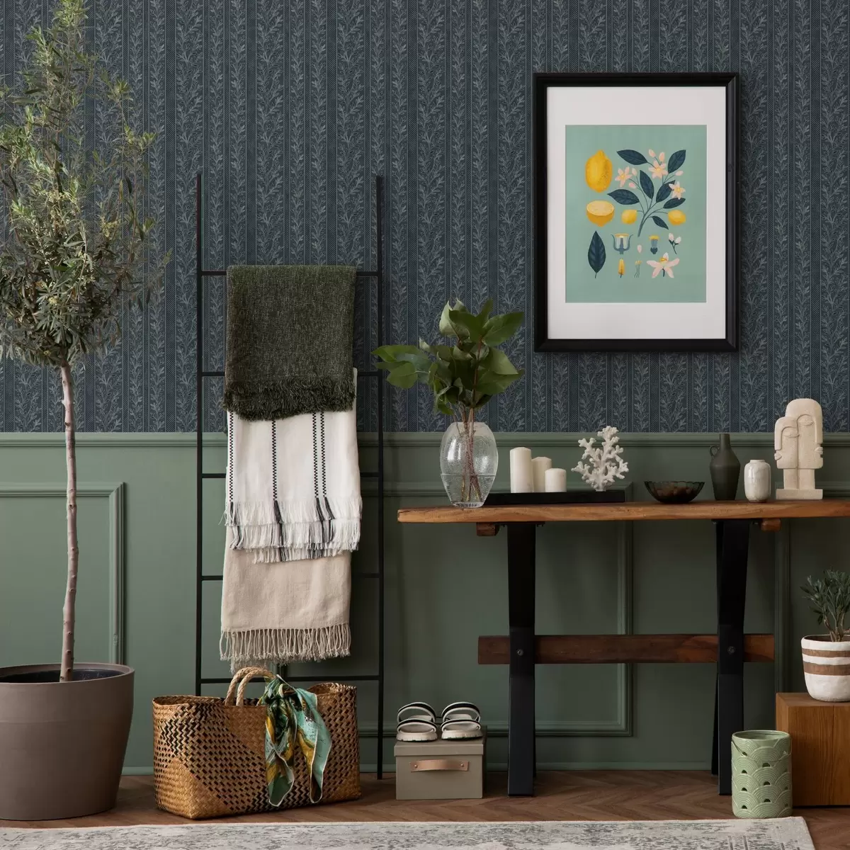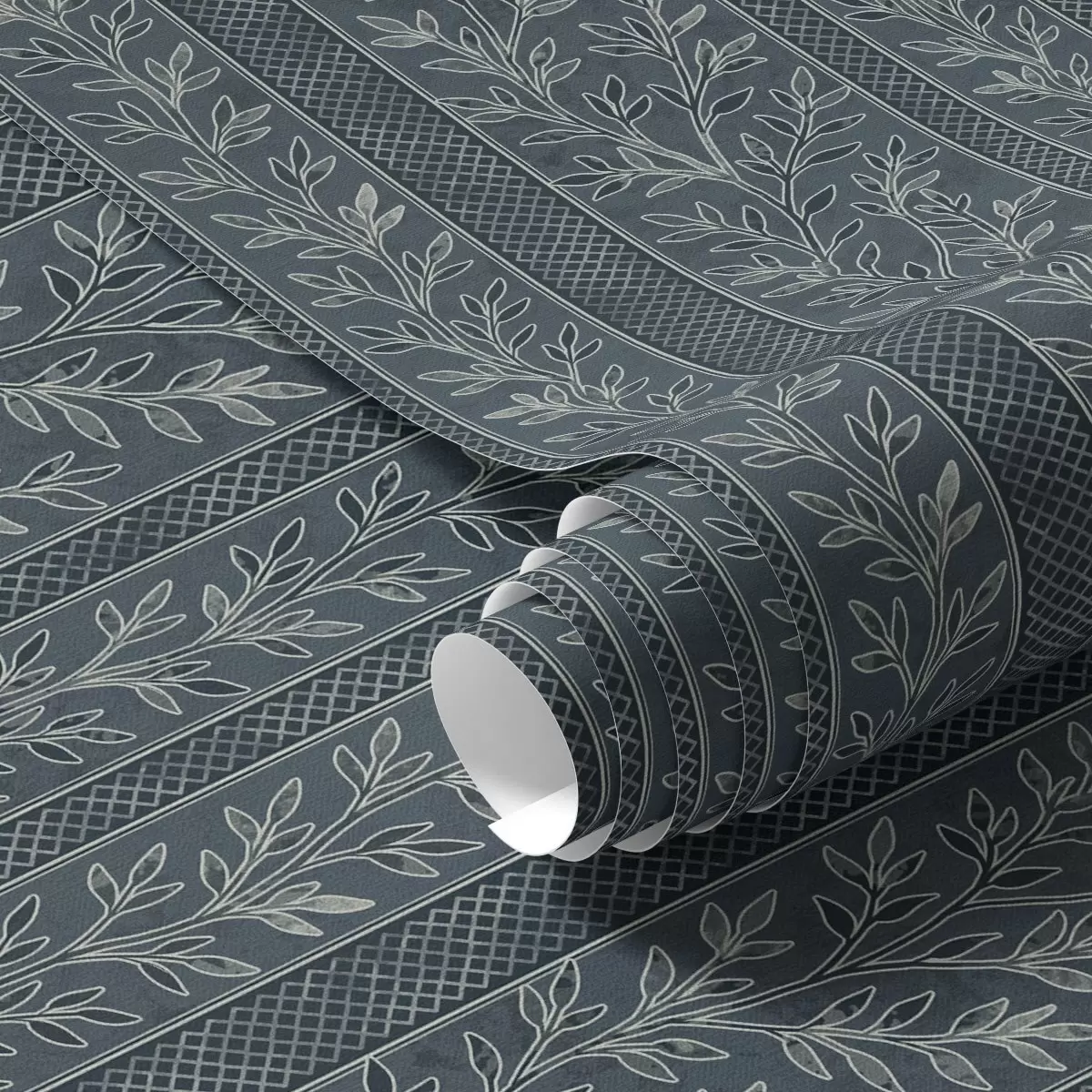 Tapeta Пругасти узорак са гранчицама на плавој позадини бр. a00425