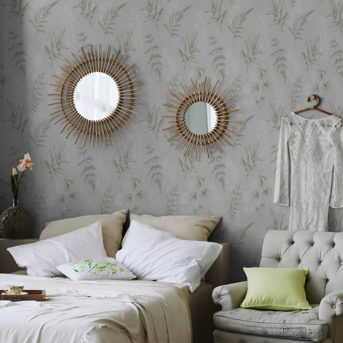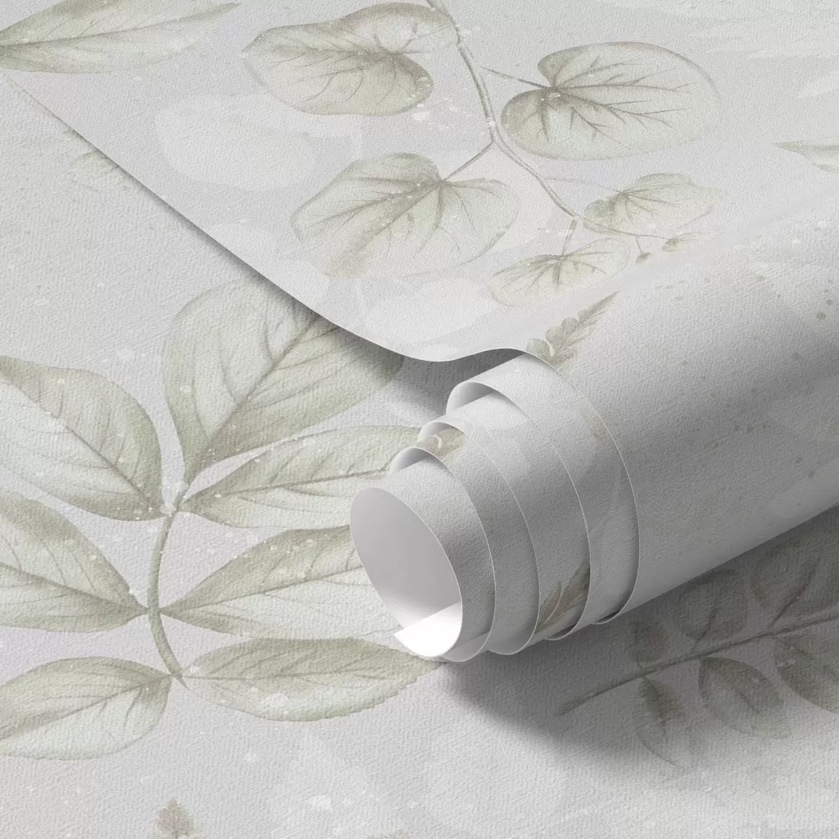 Tapeta Светло акварелно лишће са ефектом прскања на сивој позадини бр. a00446
