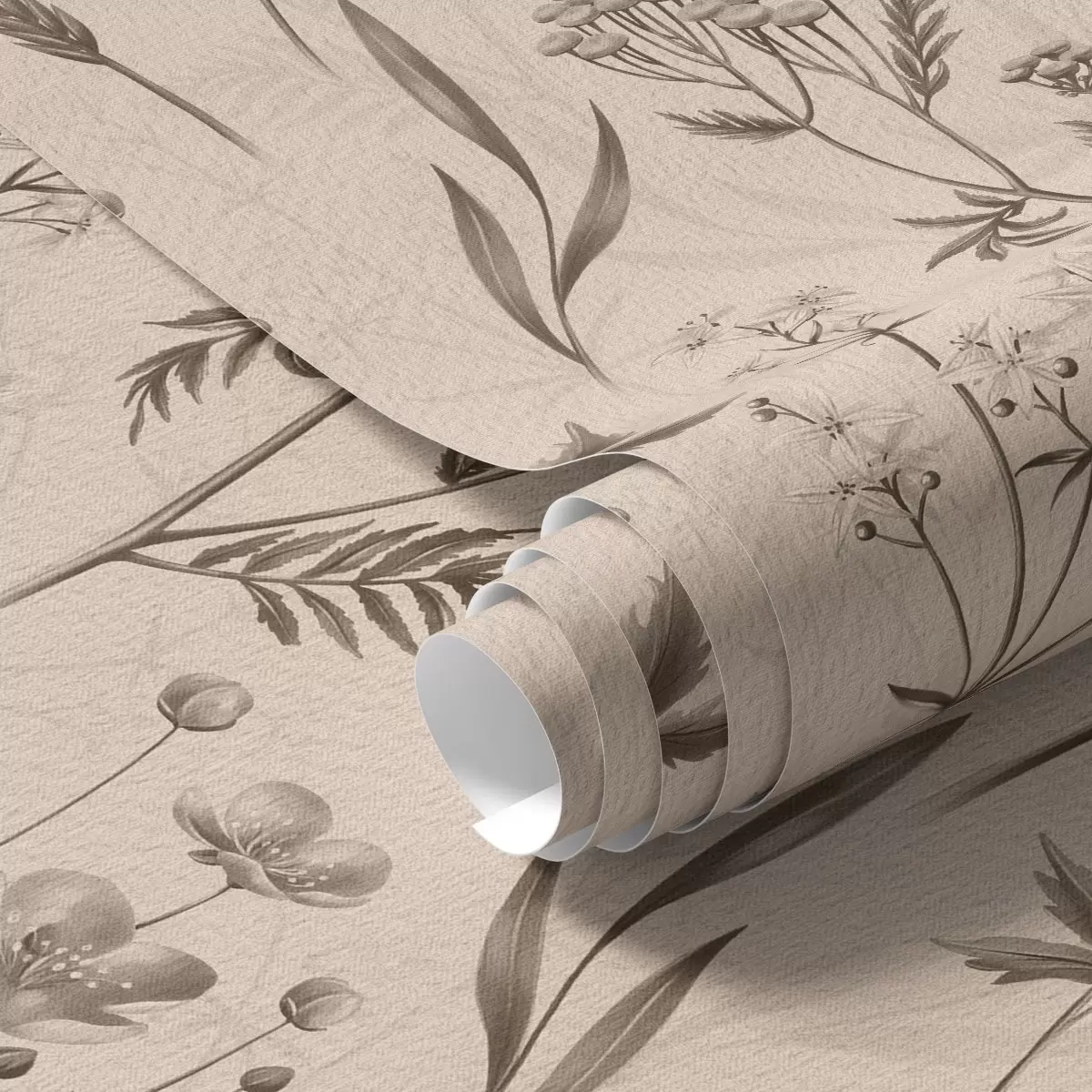 Tapeta Жуто цвеће и зеленило у сиво-смеђим тоновима бр. a00472v1