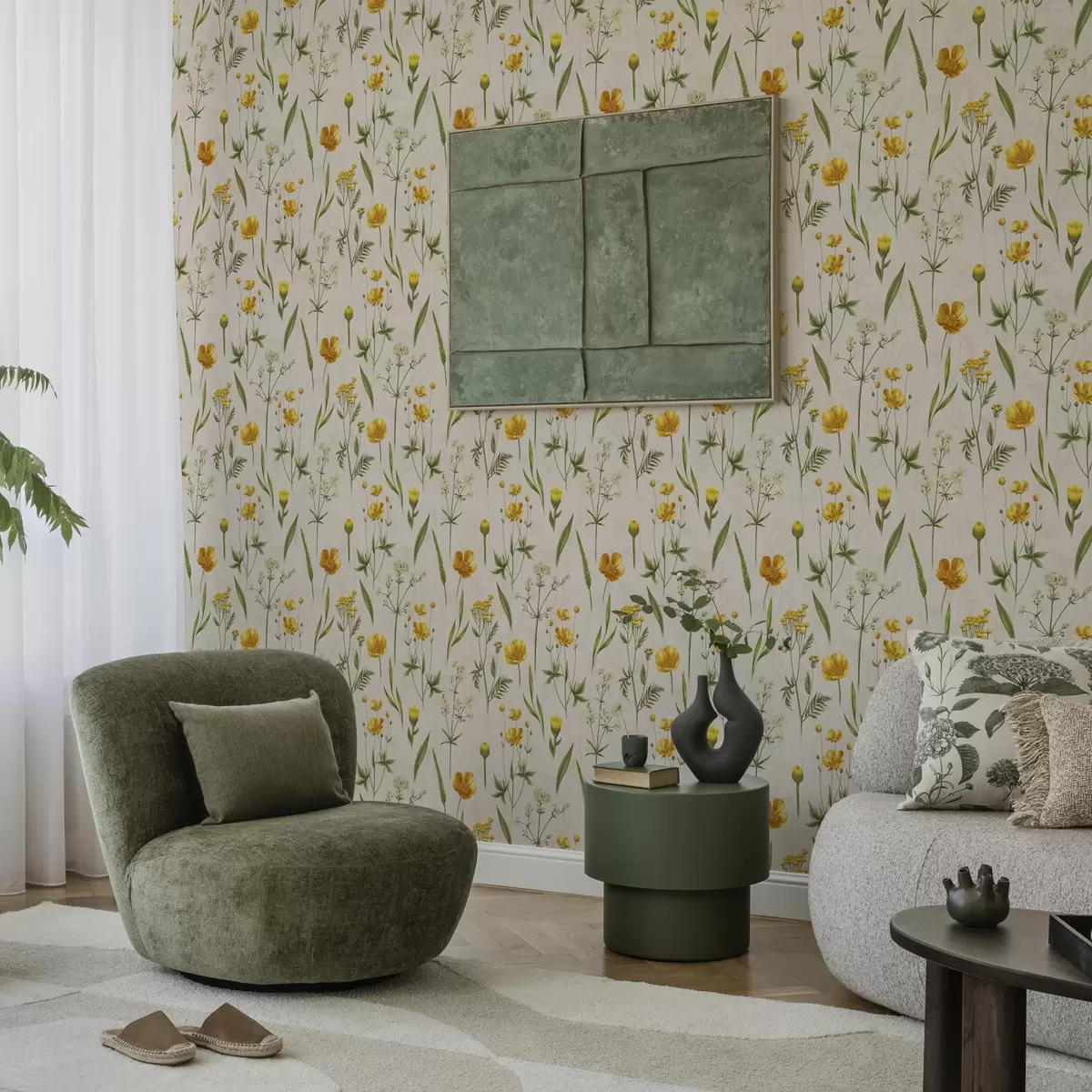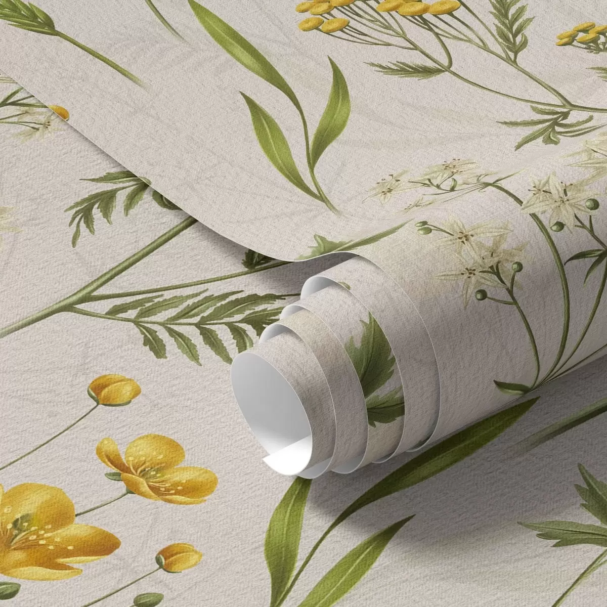 Tapeta Жуто цвеће и зеленило на беж позадини бр. a00472v2