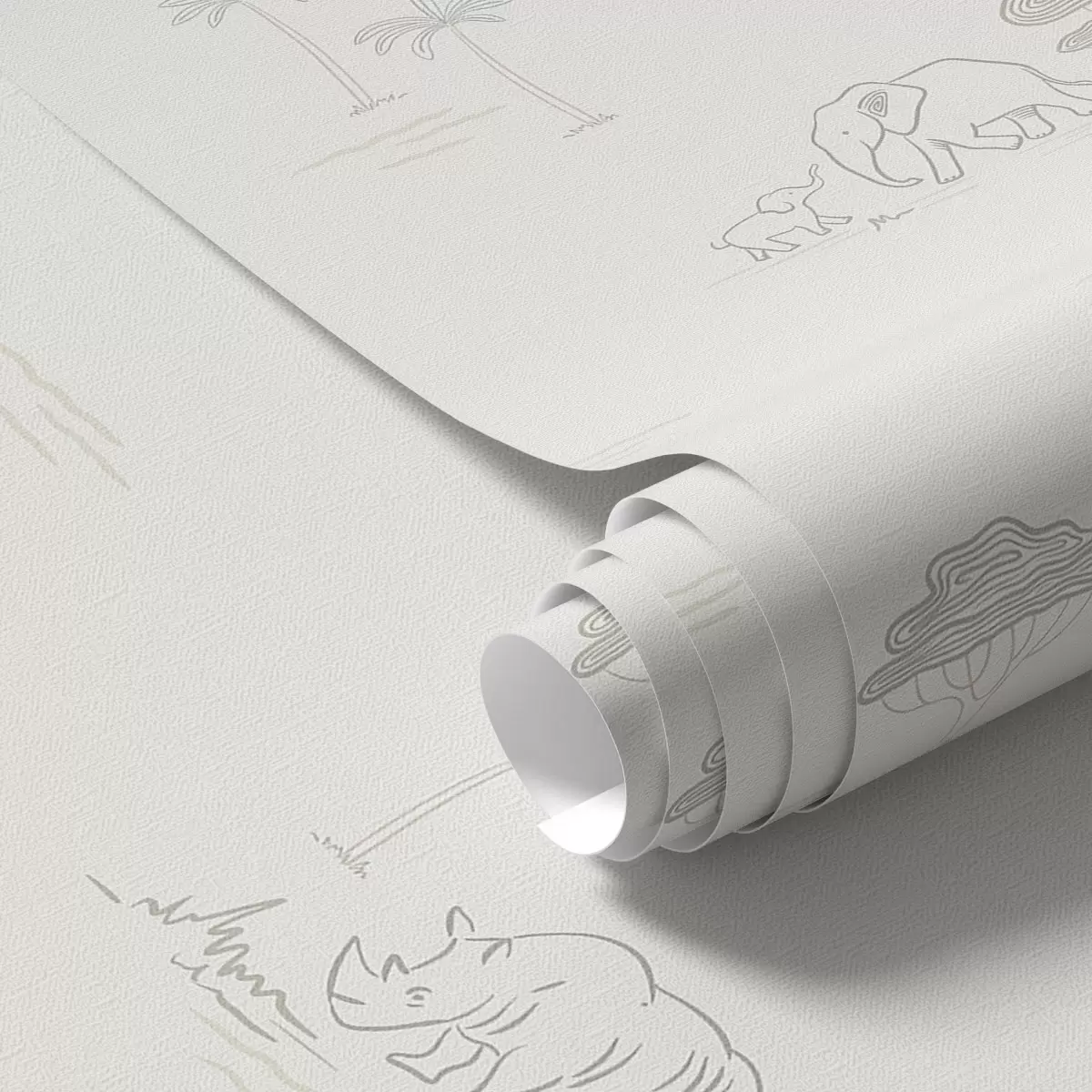Tapeta Минималистички сафари: слонови, носорог, леопард и палме бр. a00492