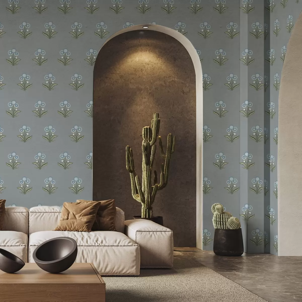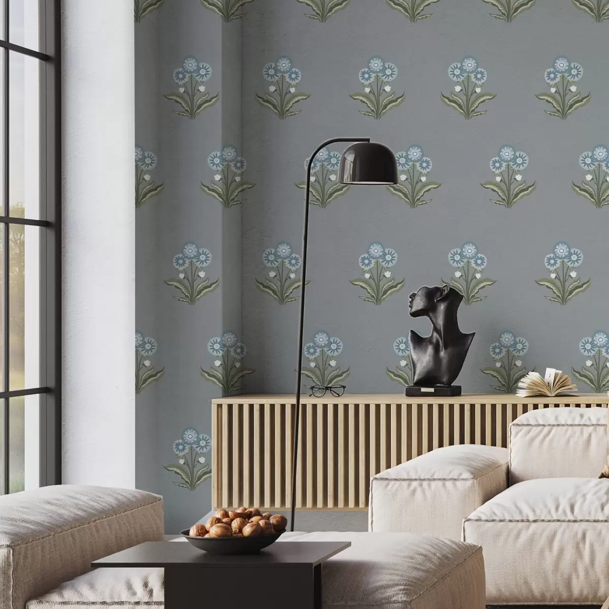 Tapeta Стилизовано цвеће на сиво-плавој позадини, хладна палета бр. a00494v1