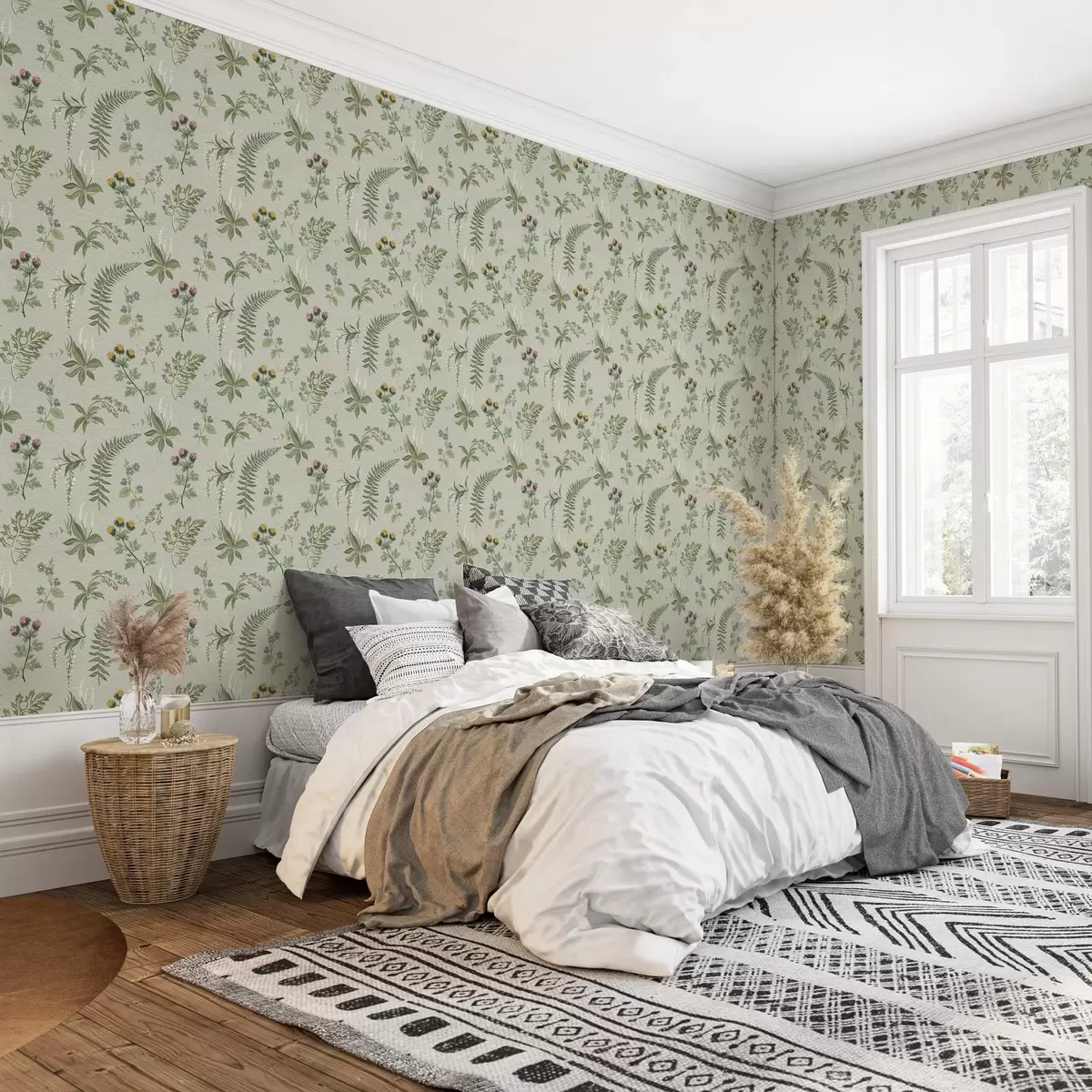 Tapeta Ботаничке траве и папрати на бледо сивозеленој бр. a00498