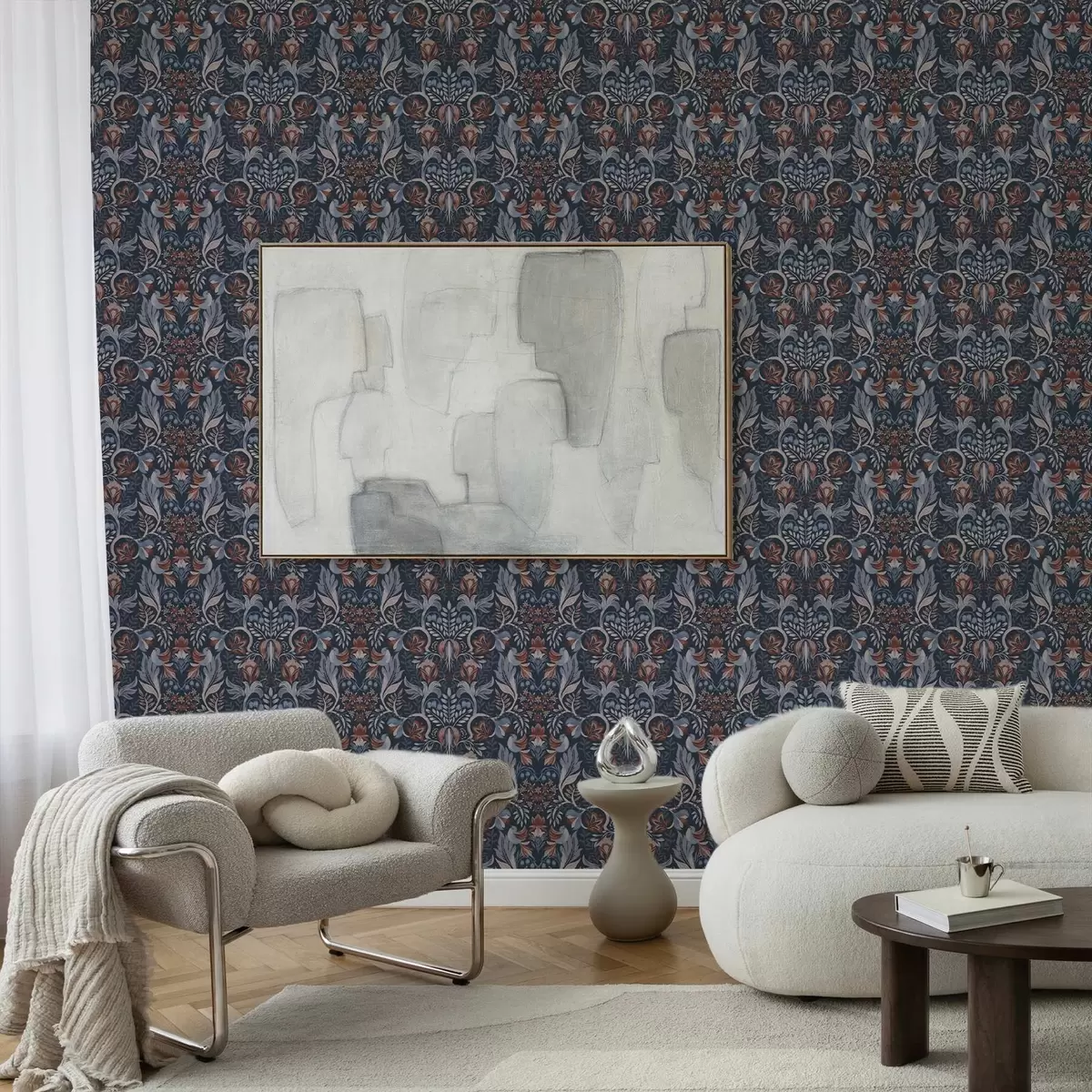 Tapeta Народни украс са птицама, дубоко индиго боје бр. a00502v1