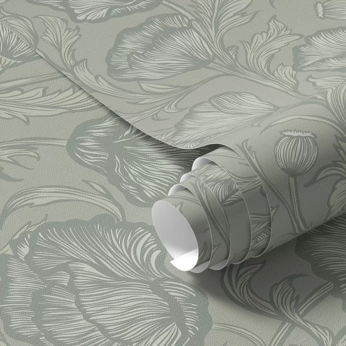 Tapeta Макови линијског цртежа на сиво-зеленој позадини бр. a00572v1