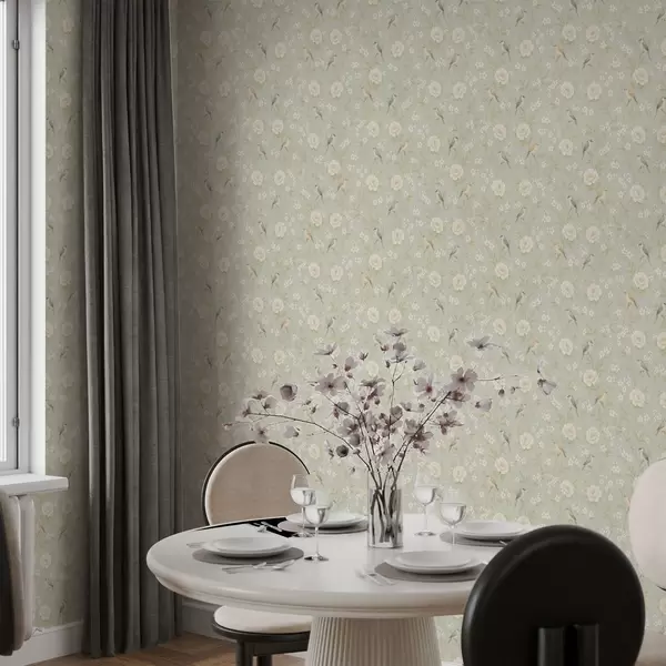 Tapeta Птице међу белим цветовима на сиво-зеленој позадини бр. a00583