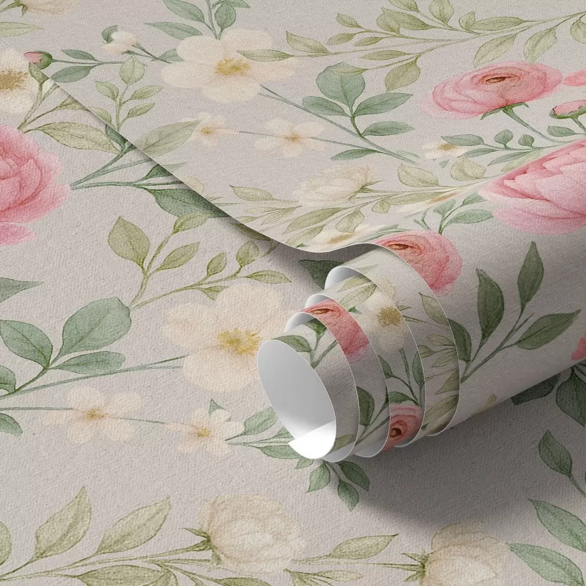 Tapeta Акварел божури и бело цвеће на сиво-беж боји бр. a00592