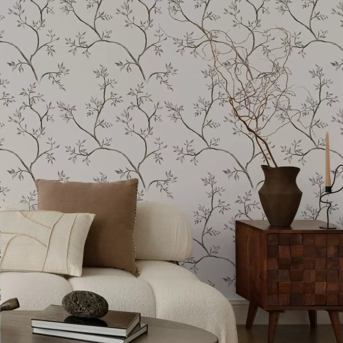 Tapeta Нежне лиснате гране на топлој кремастој позадини бр. a00597v1