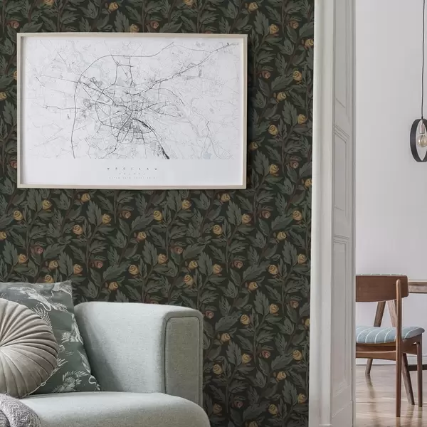 Tapeta Тамни цветни узорак са жутим пупољцима и листовима бр. a00598