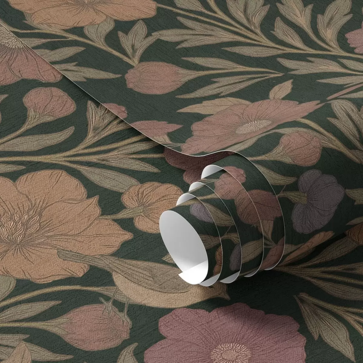 Tapeta Јесење цвеће и птице на дубоко смарагдној позадини бр. a00605v1