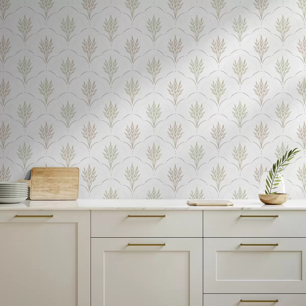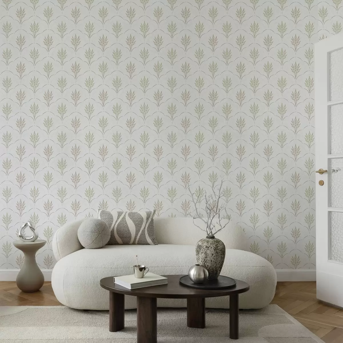 Tapeta Пшеница у лучном орнаменту, нежне пастелне боје на белој бр. a00607v1