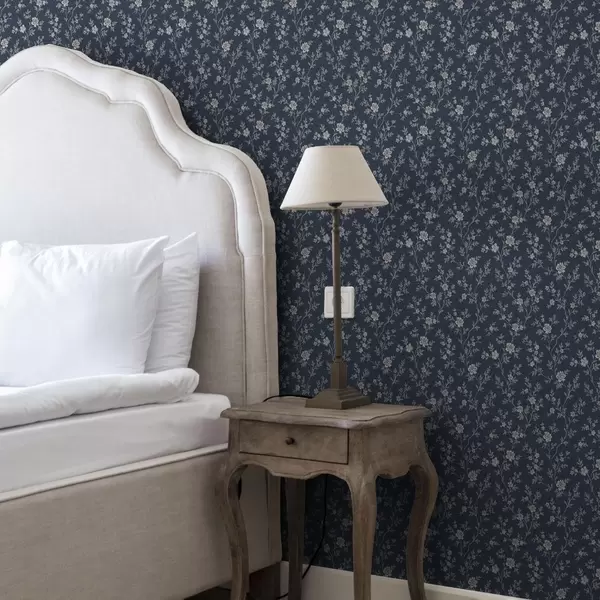 Tapeta Тамноплава позадина са танким беж гранама и цвећем бр. a00612