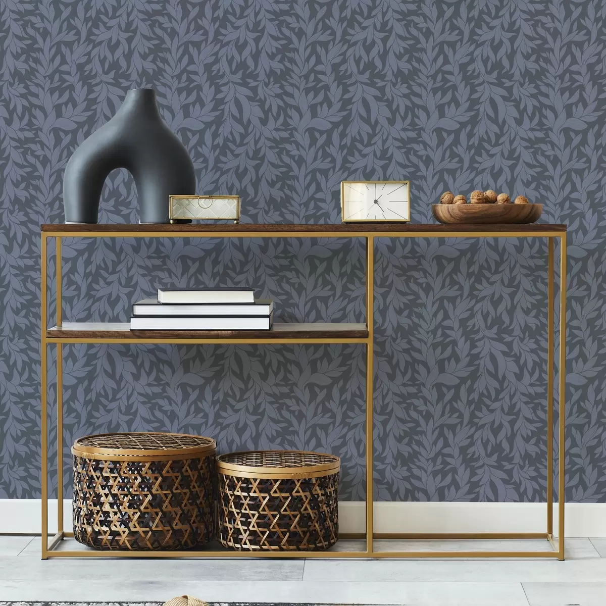 Tapeta Графитно плава позадина и плаво лишће, текстурирани потез бр. a00616v2