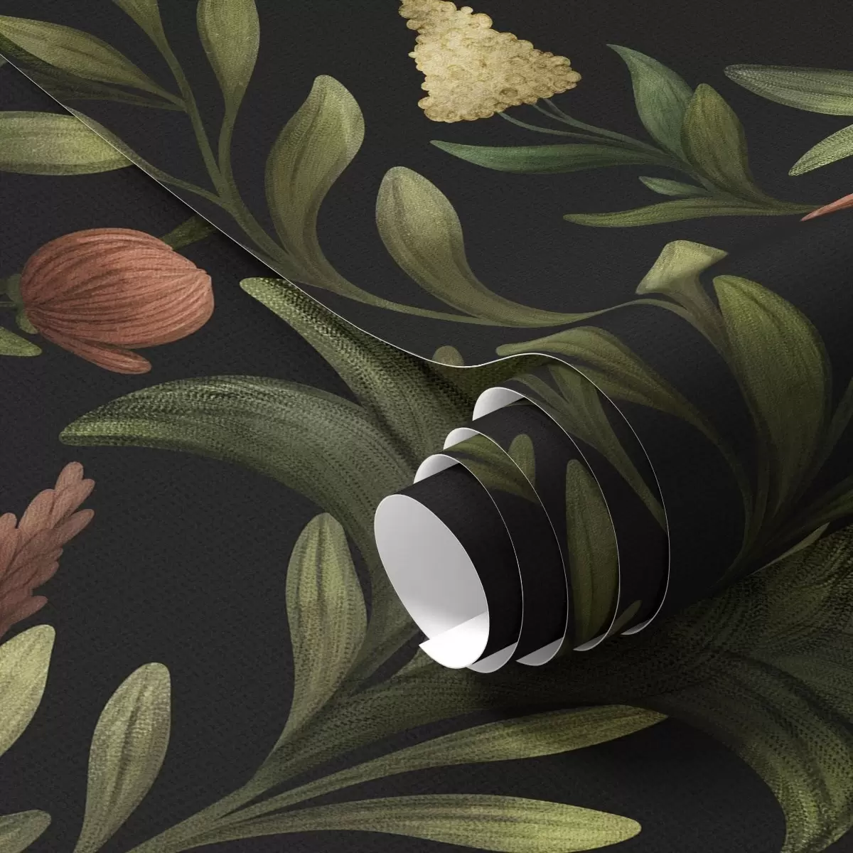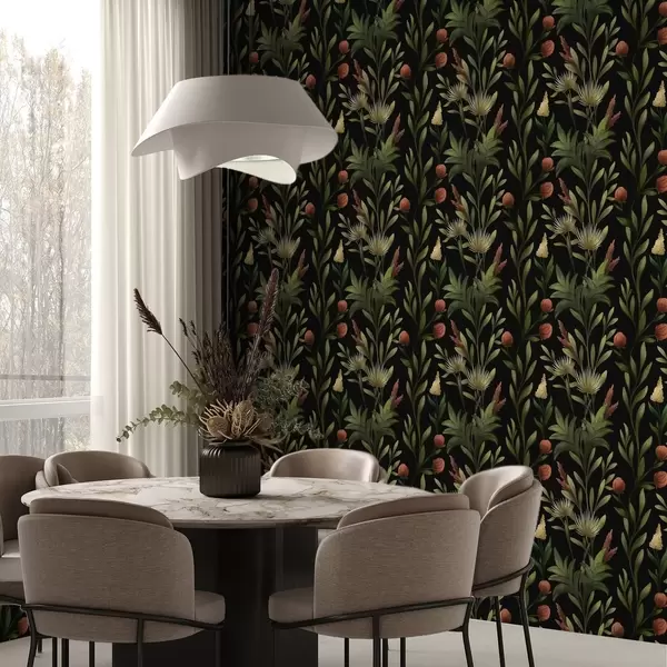 Tapeta Високе траве и цвеће на црној, детаљној штампи бр. a00620