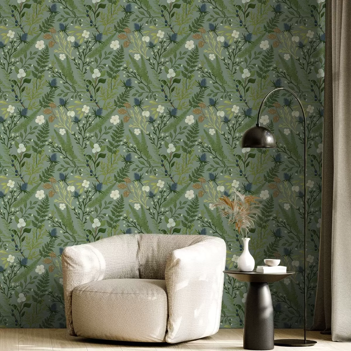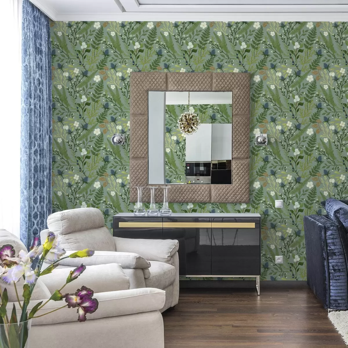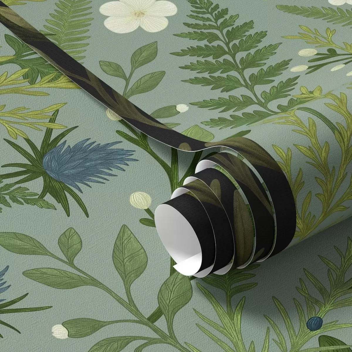 Tapeta Шумско биље, цикорија и бобице на позадини од менте бр. a00621v1