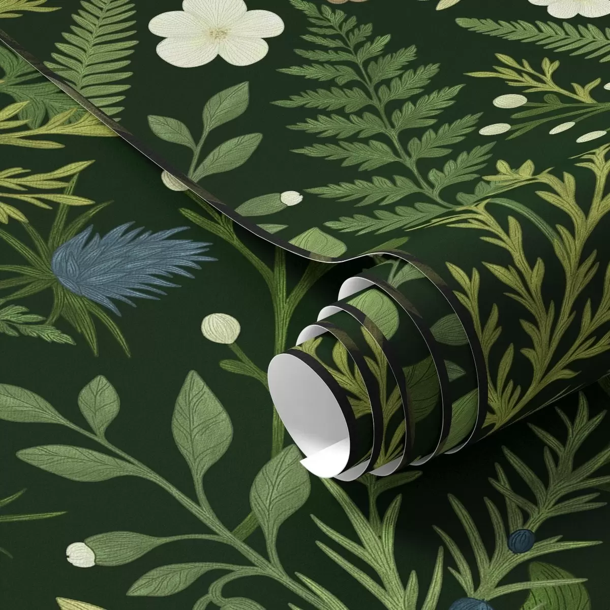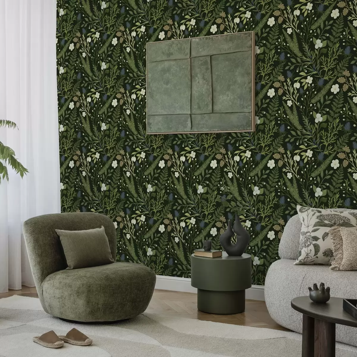 Tapeta Шумско биље и бобице на тамнозеленој позадини бр. a00621v2