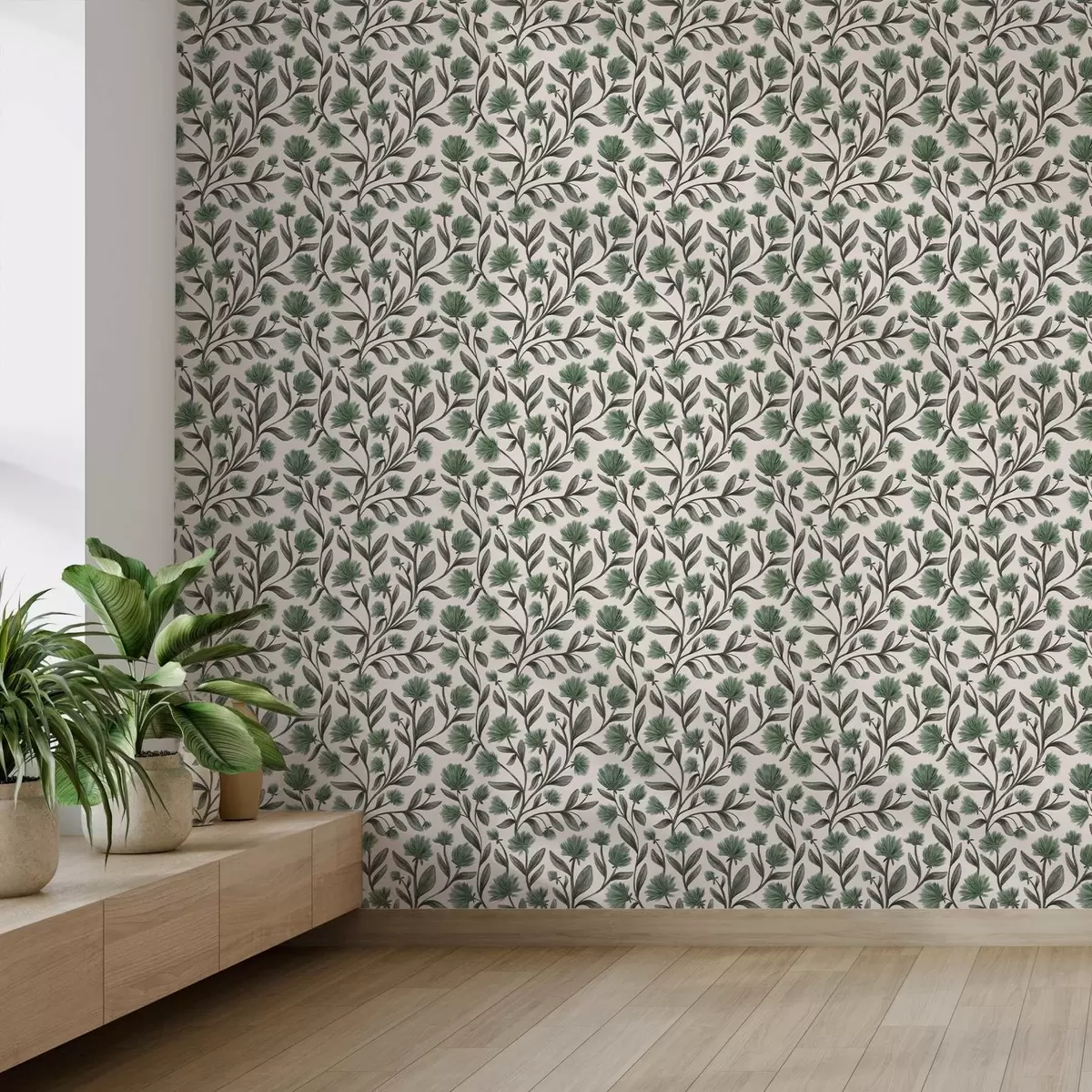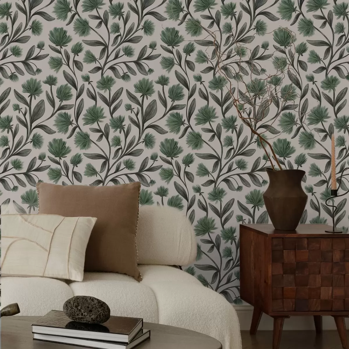 Tapeta Дивље цвеће у зеленој палети на кремастој позадини бр. a00623v3