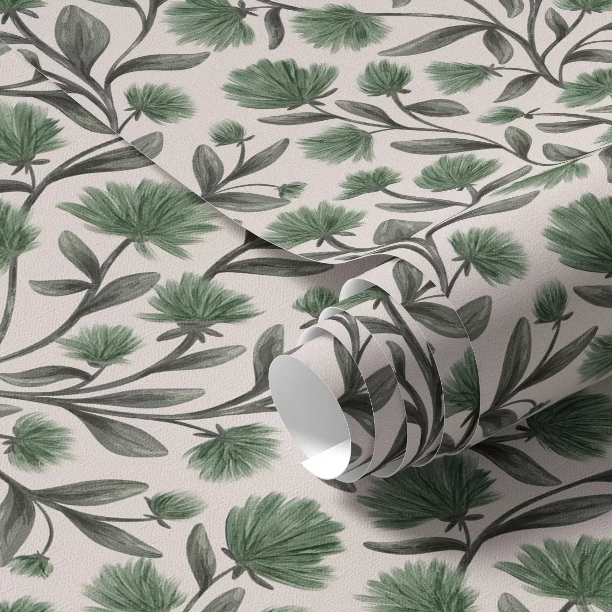 Tapeta Дивље цвеће у зеленој палети на кремастој позадини бр. a00623v3