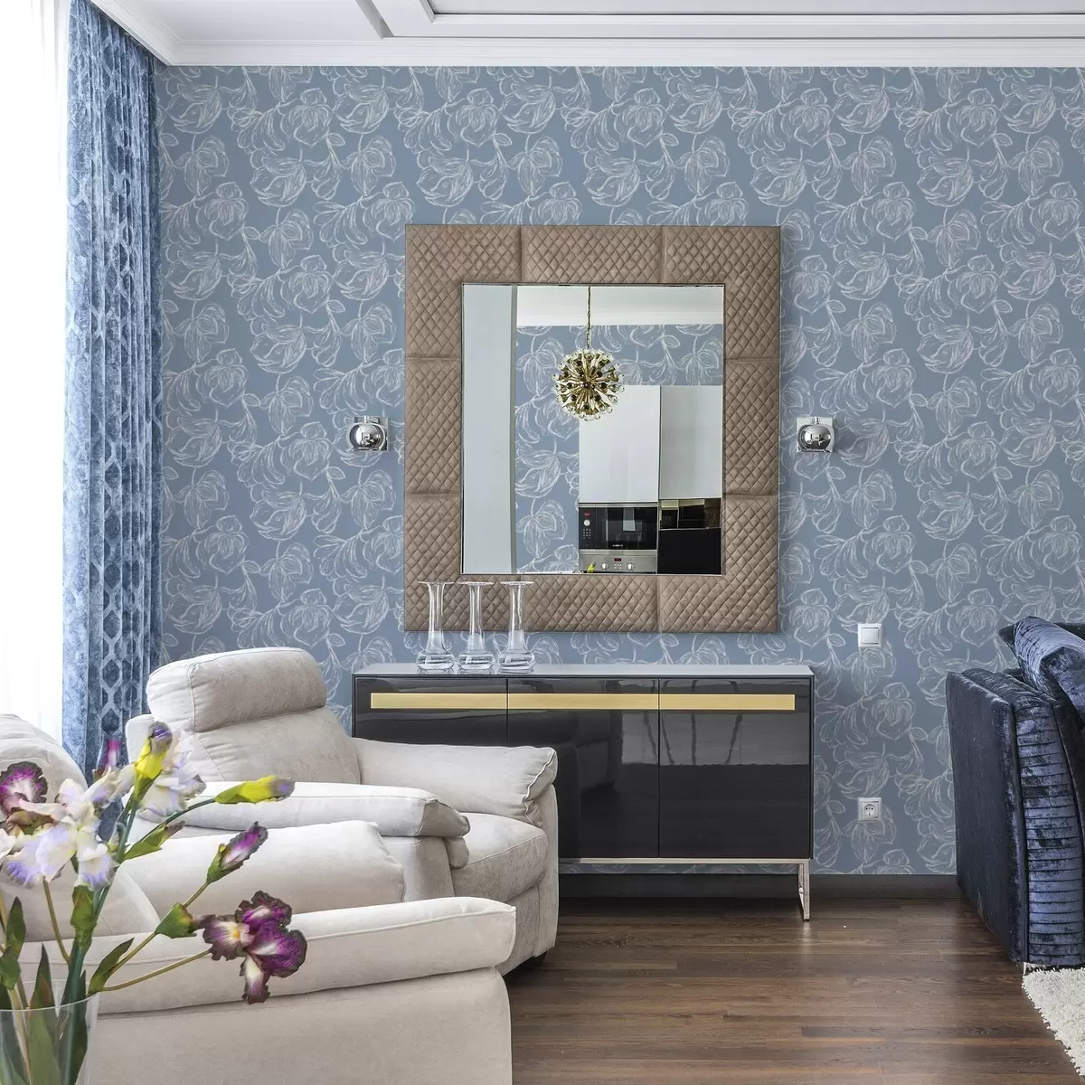 Tapeta Светлоплава позадина са кредастим обрисима цвећа бр. a00625v3