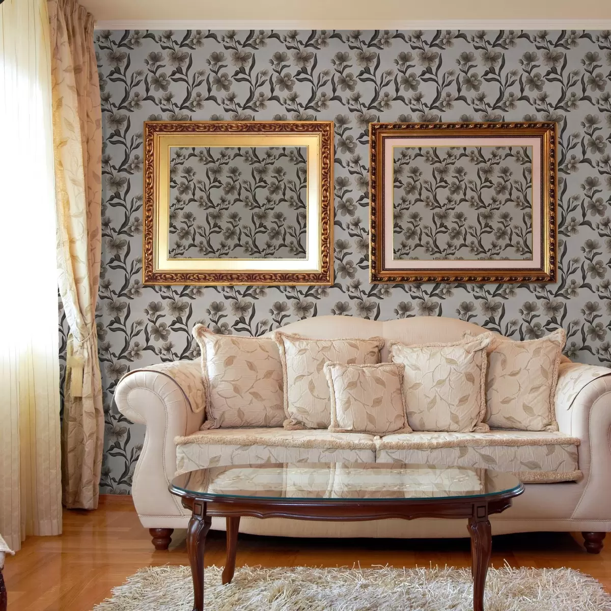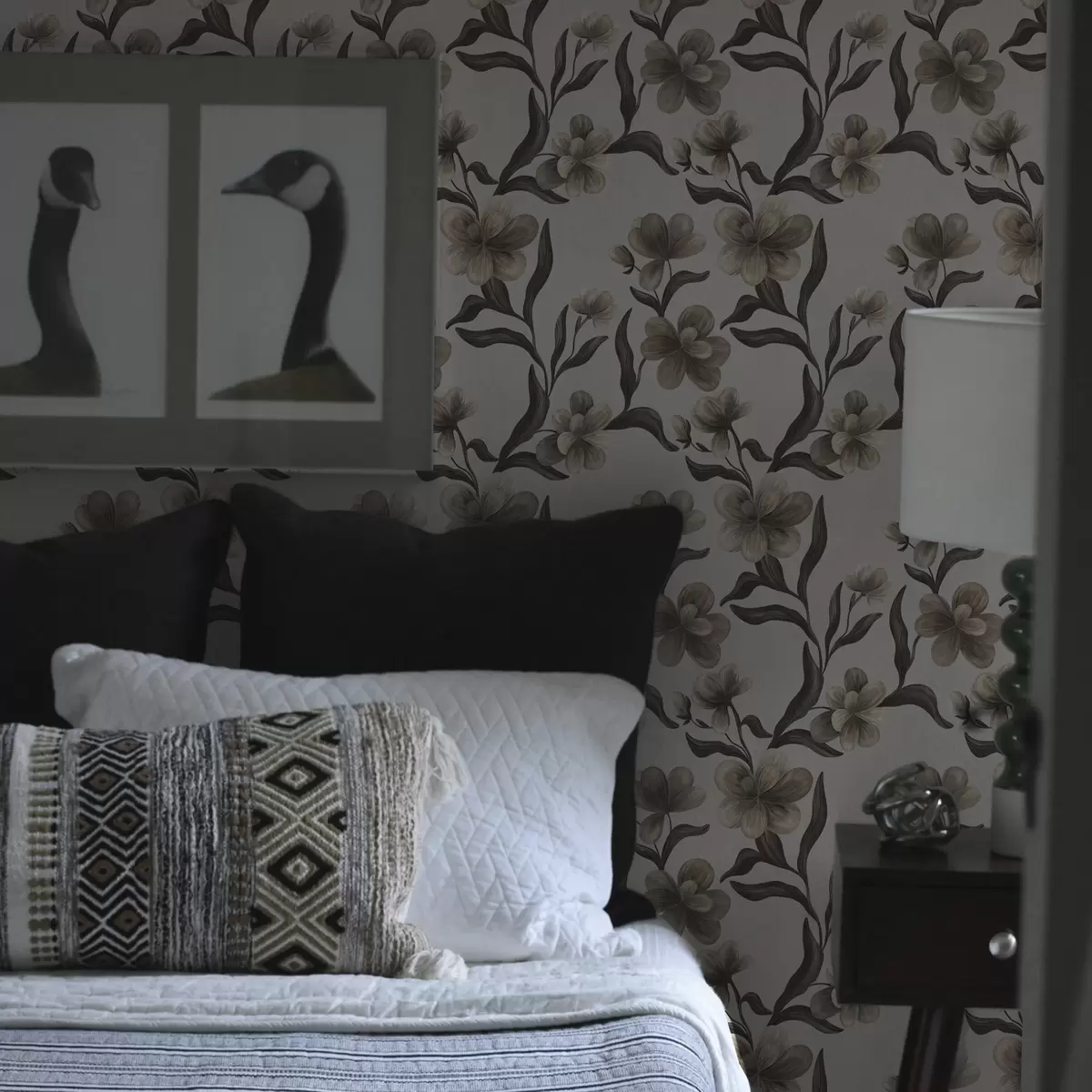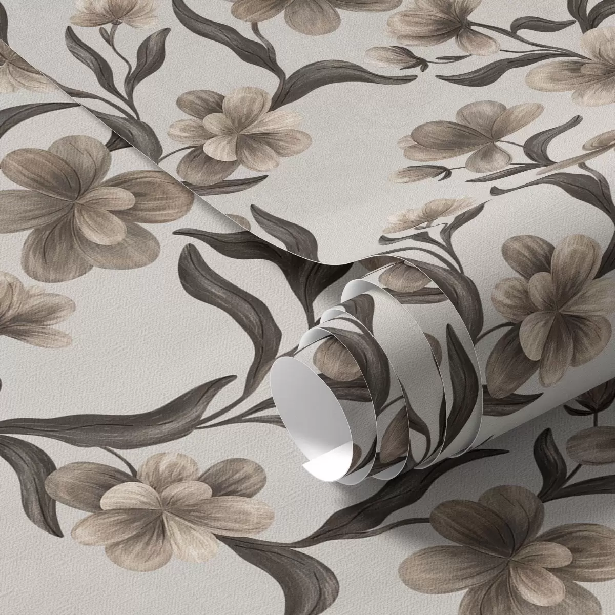 Tapeta Беж цвеће и тамне гране на светло сивој позадини бр. a00626v1