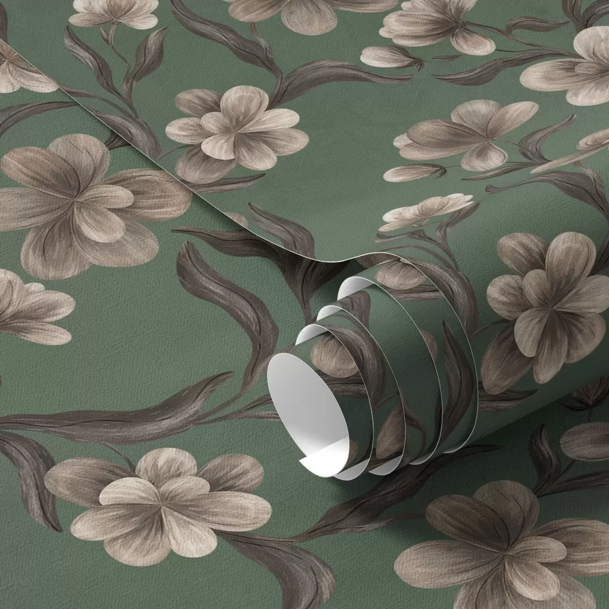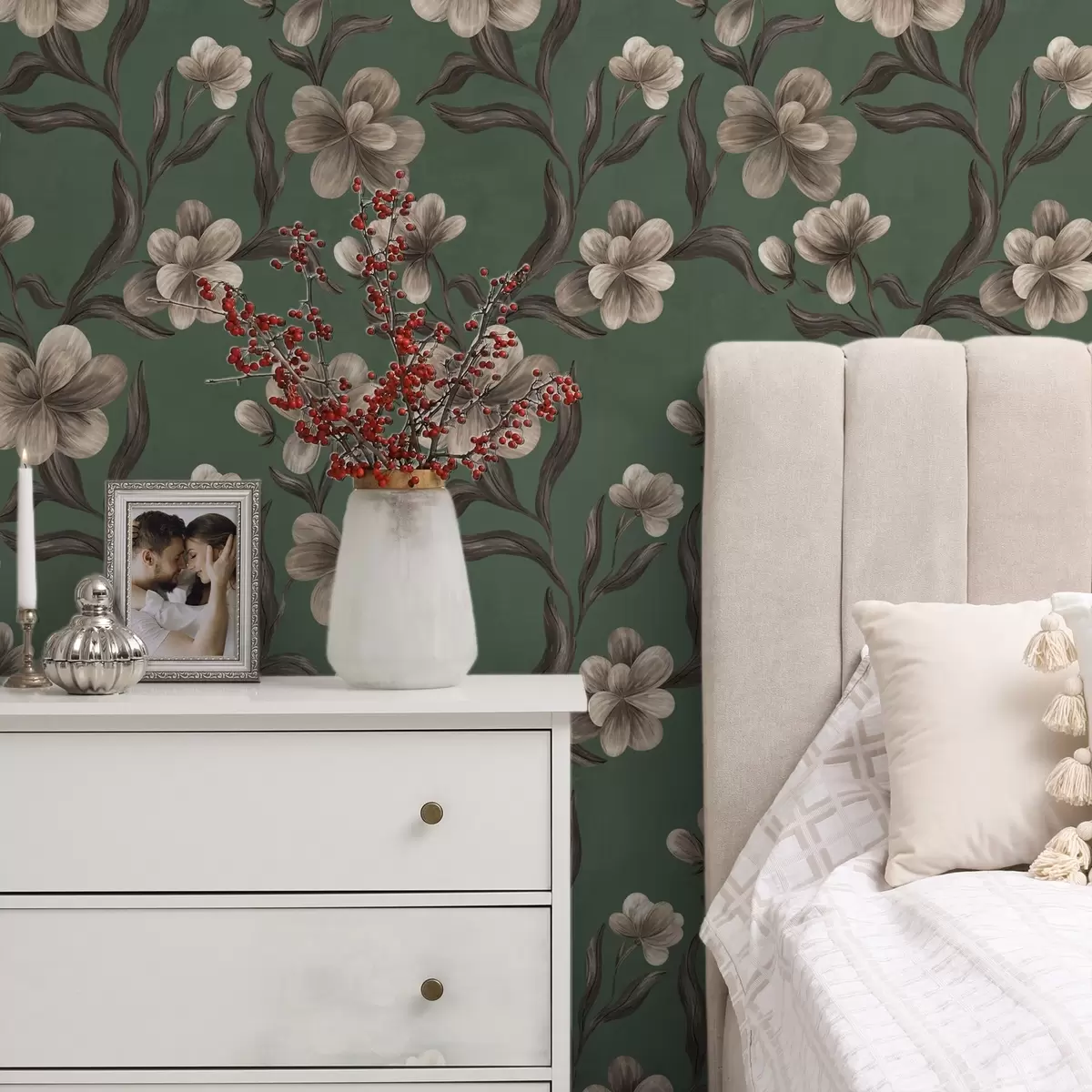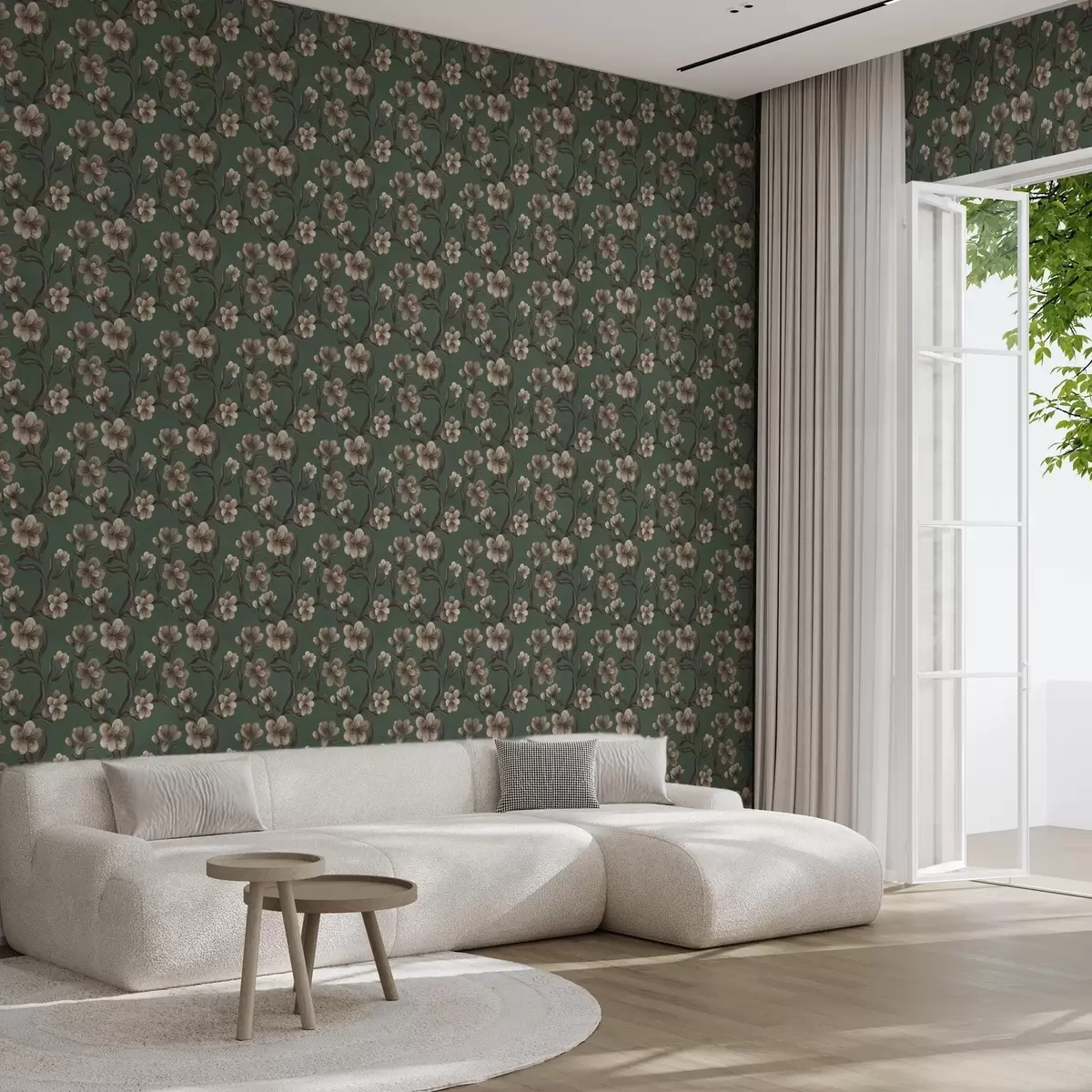 Tapeta Беж цвеће на богатој зеленој позадини бр. a00626v3
