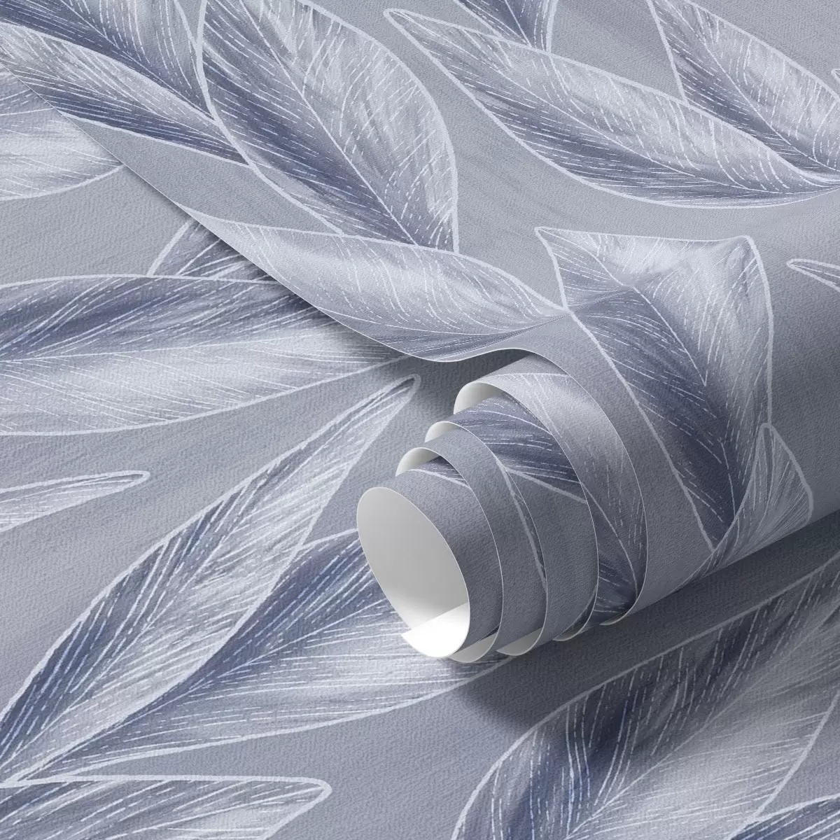 Tapeta Сребрноплави листови на сивоплавој позадини, графички узорак бр. a00627