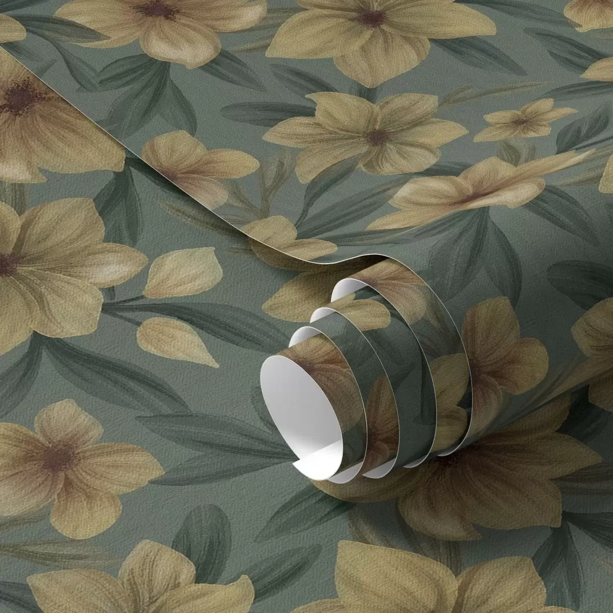 Tapeta Окер цветови на дубоко зеленој позадини, густи узорак бр. a00628