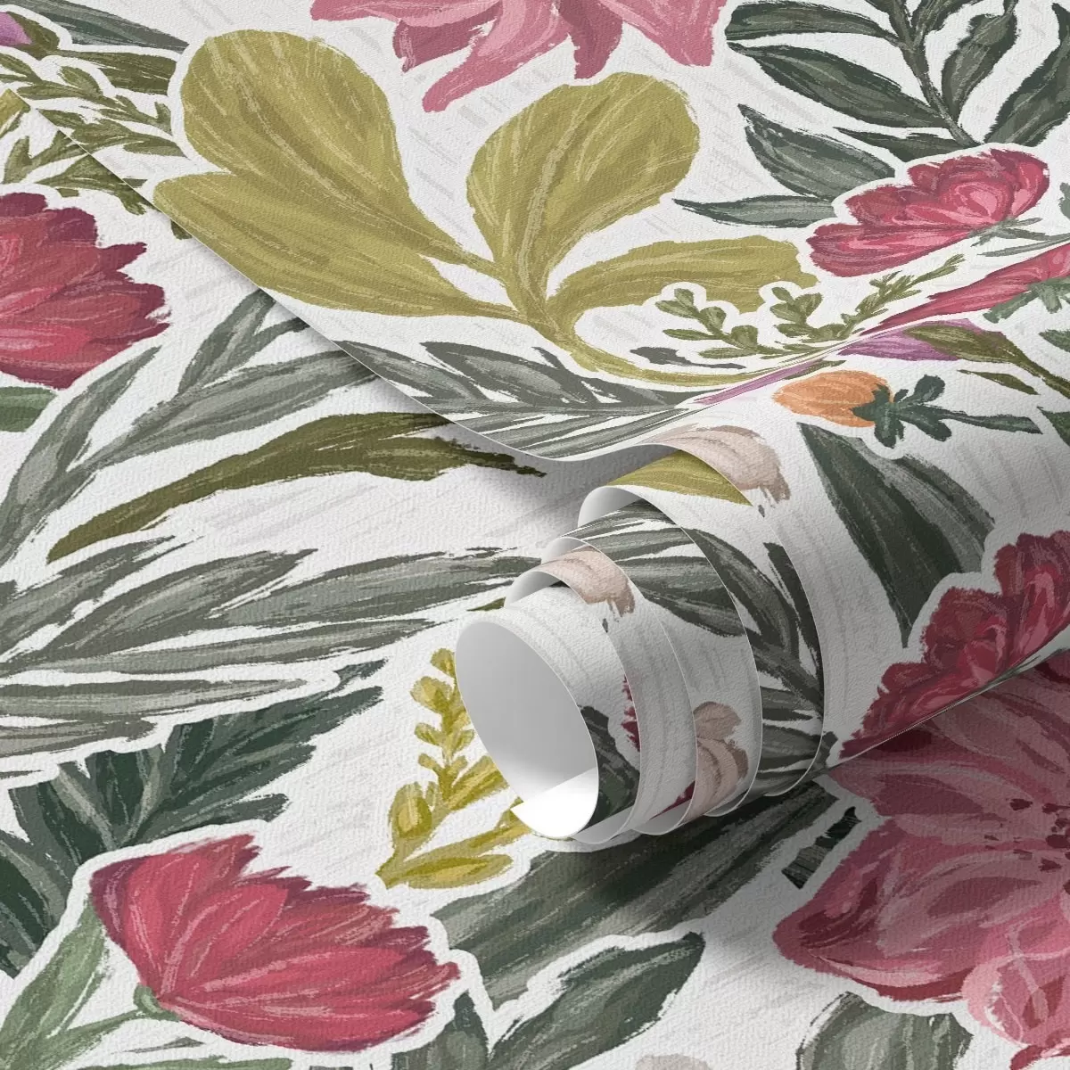 Tapeta Бујно ружичасто и кремасто цвеће на белој позадини, импасто текстура бр. a00629v1