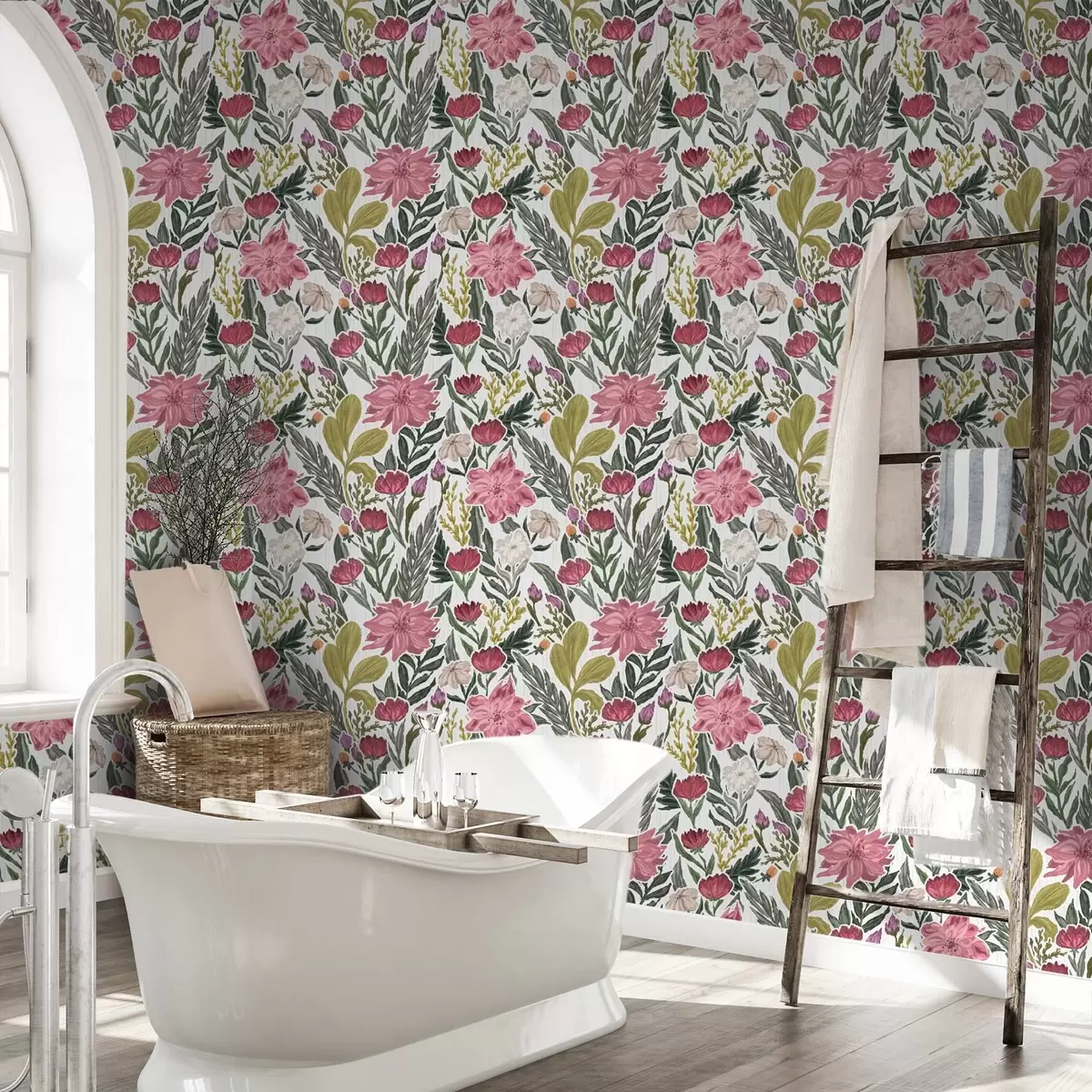 Tapeta Бујно ружичасто и кремасто цвеће на белој позадини, импасто текстура бр. a00629v1
