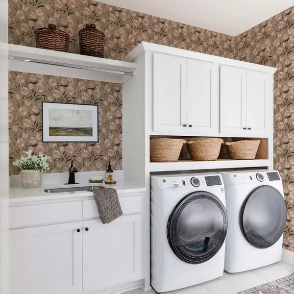 Tapeta Ружичасти цветови и лептири на маслинасто-беж позадини бр. a00633v2