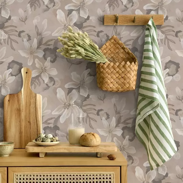 Tapeta Велико беж цвеће са апстрактним акварелним мрљама бр. a00635