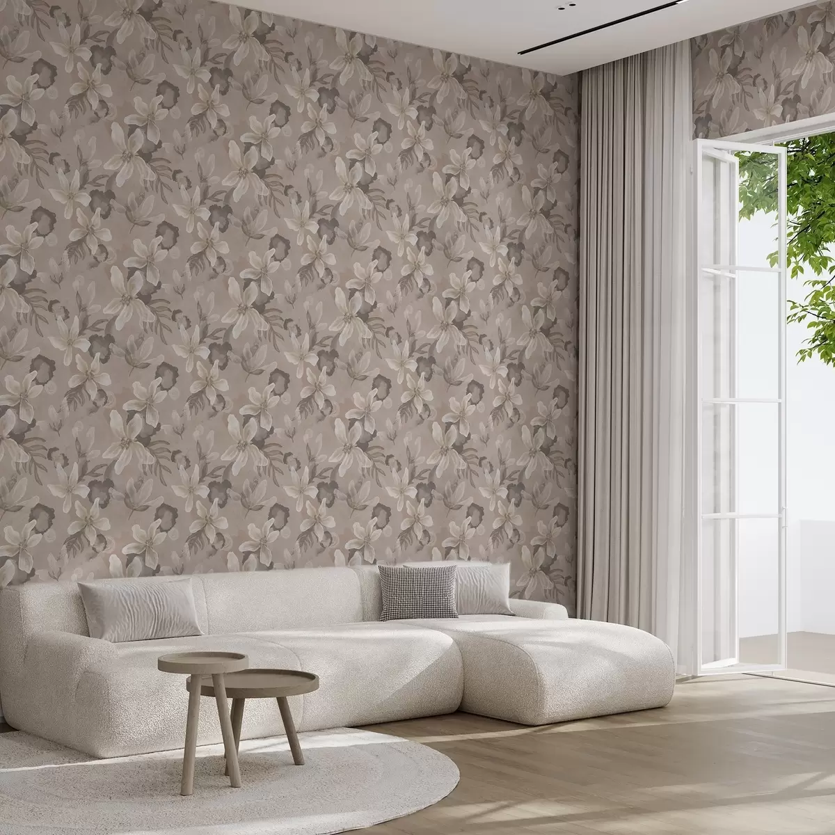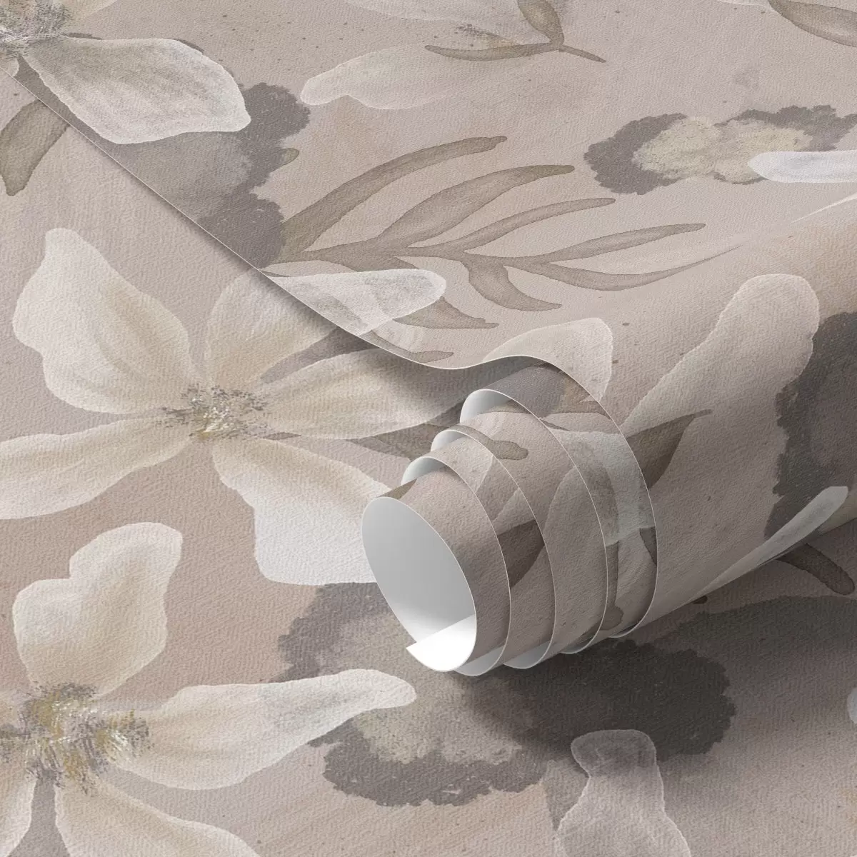 Tapeta Велико беж цвеће са апстрактним акварелним мрљама бр. a00635
