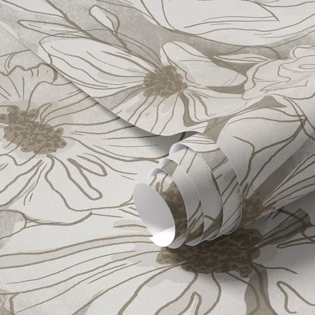 Tapeta Линеарно цвеће у монохроматској беж-сивој палети бр. a00636