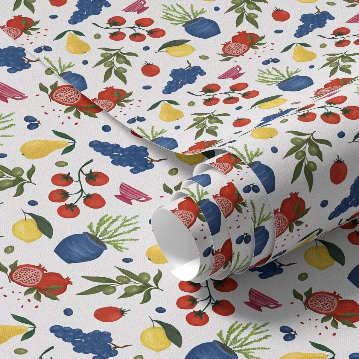 Tapeta Светли воћно-ботанички узорак на белој позадини бр. a00637v1