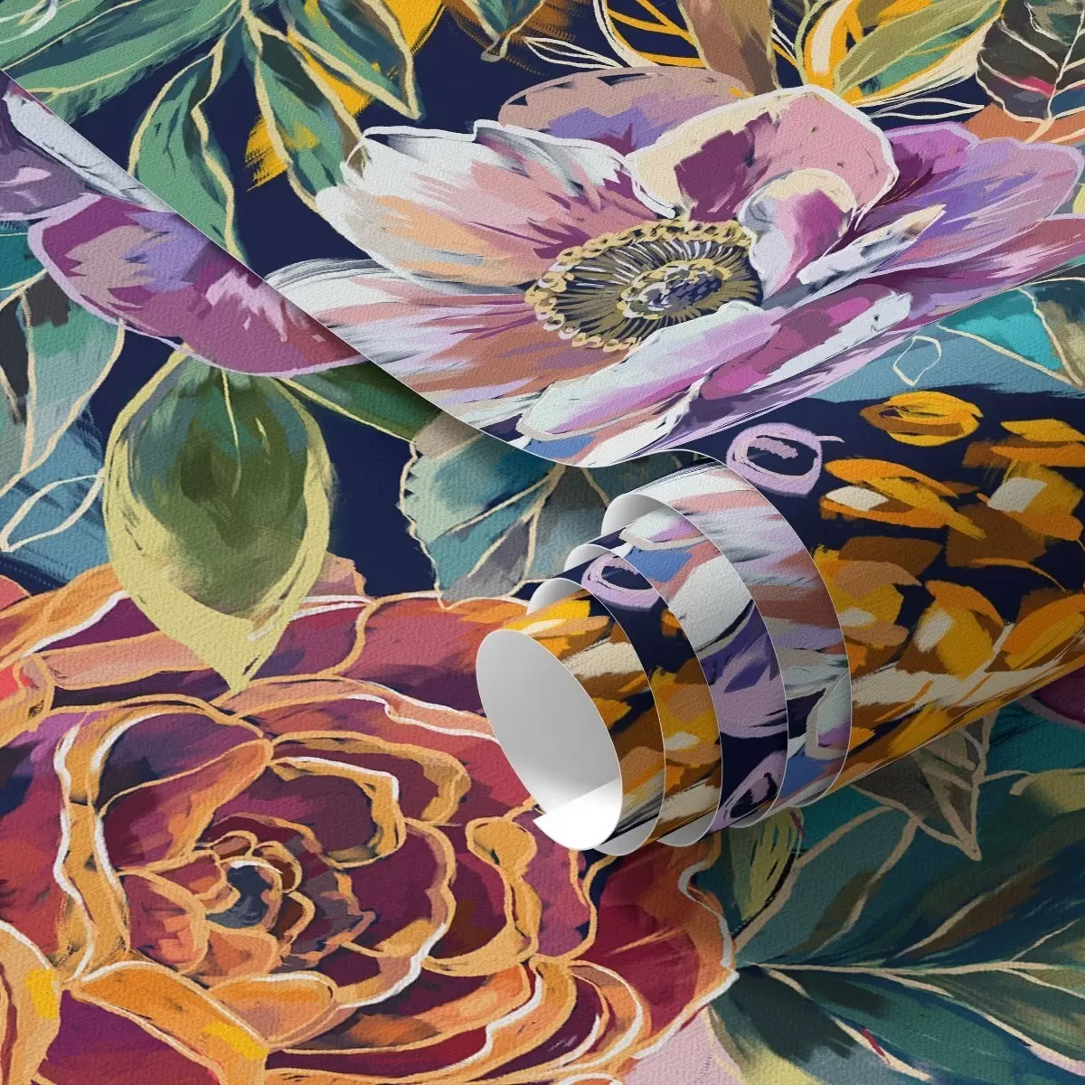 Tapeta Смело велико цвеће осликано четкицом на тамноплавој позадини бр. a00643