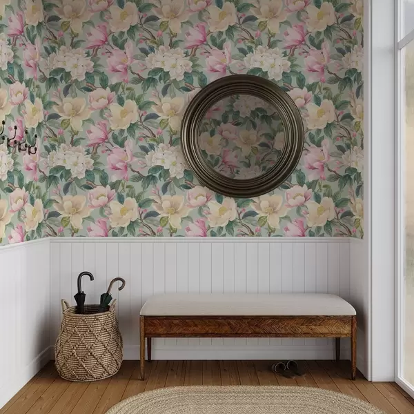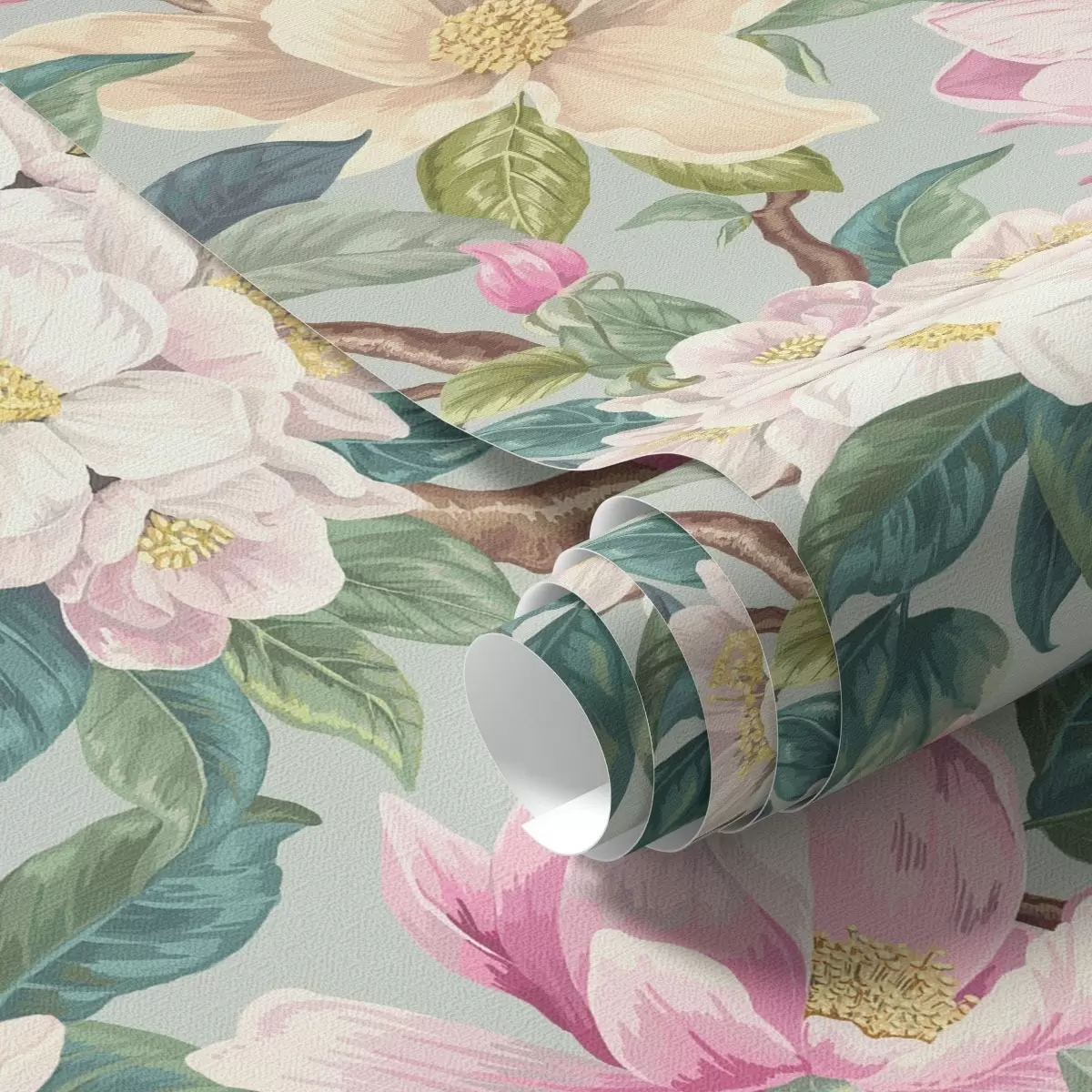 Tapeta Магнолије и бели цветови на менто сивој позадини бр. a00644